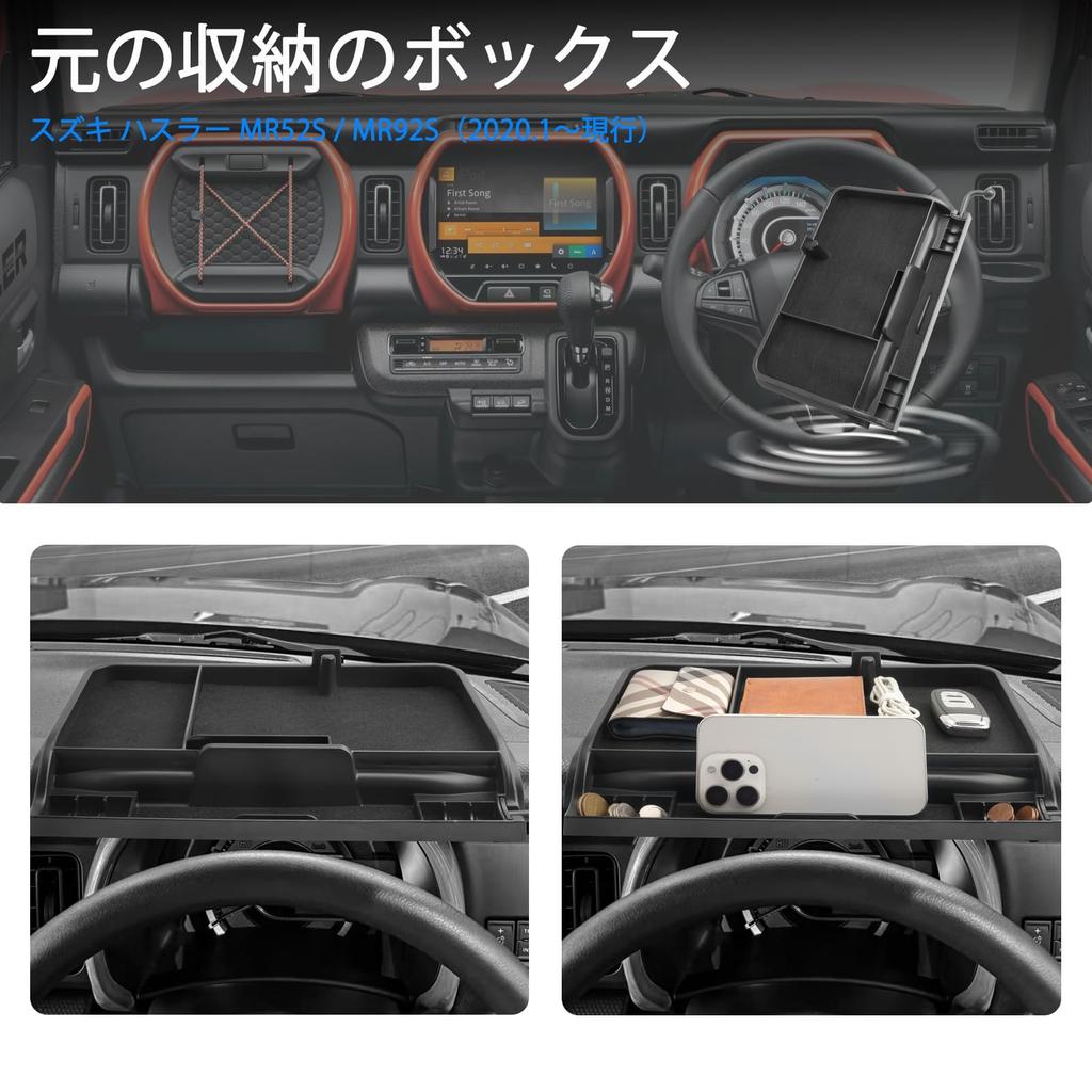[Разработано на заказ для идеальной посадки] Совместимые модели: Suzuki Hustler MR52S / MR92S (2020.1 - текущие модели). Включает в себя: Задний лоток для хранения на приборной панели, автомобильный ящик для хранения x 1, переходник для крепления смартфона x 1. Специально разработан для Suzuki Hustler MR52S и MR92S, идеально подходит за приборную панель. Трехмерная конструкция, основанная на фактических измерениях автомобиля, исключает любую расхлябанность или шатание.. Обеспечивает отличную устойчивость во время движения, сочетая безопасность и эстетическую привлекательность.. Дизайн органично вписывается в интерьер, обеспечивая заводскую отделку.