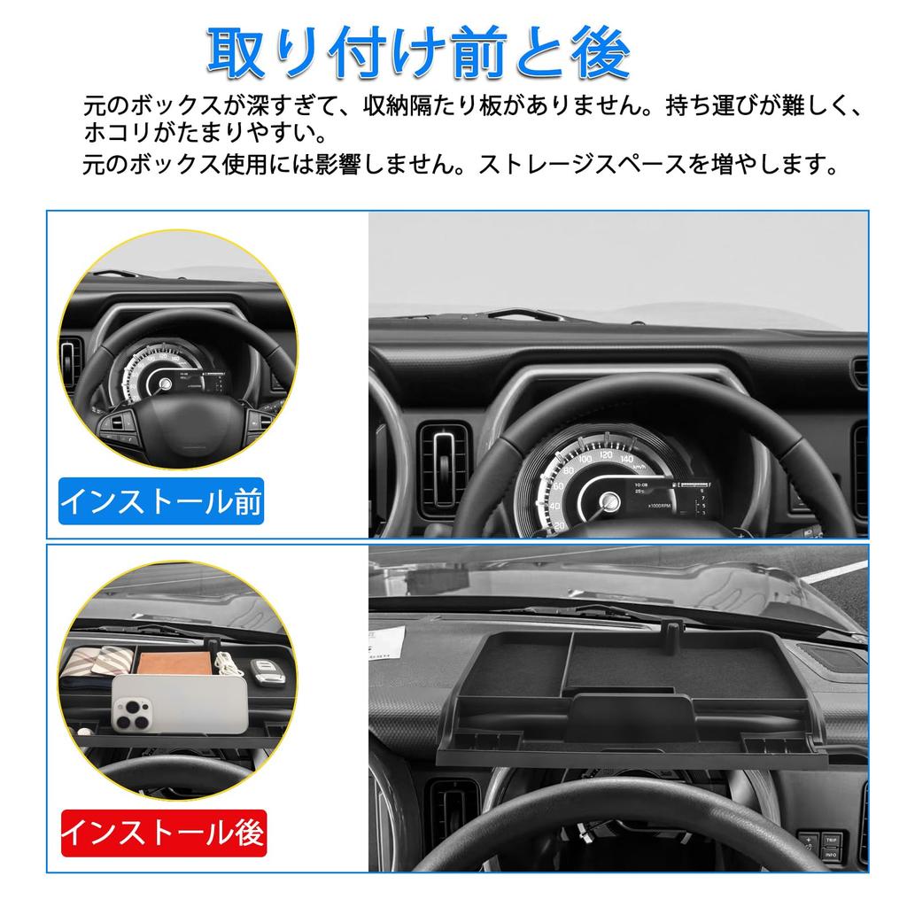 2. Этот продукт представляет собой лоток для хранения, разработанный специально для Suzuki Hustler MR52S и MR92S, расположенный за приборной панелью. Он эффективно использует часто пустующее пространство за приборной панелью для аккуратного хранения мелких предметов, таких как смартфоны, солнцезащитные очки и ключи.. Это помогает поддерживать порядок в салоне вашего автомобиля.