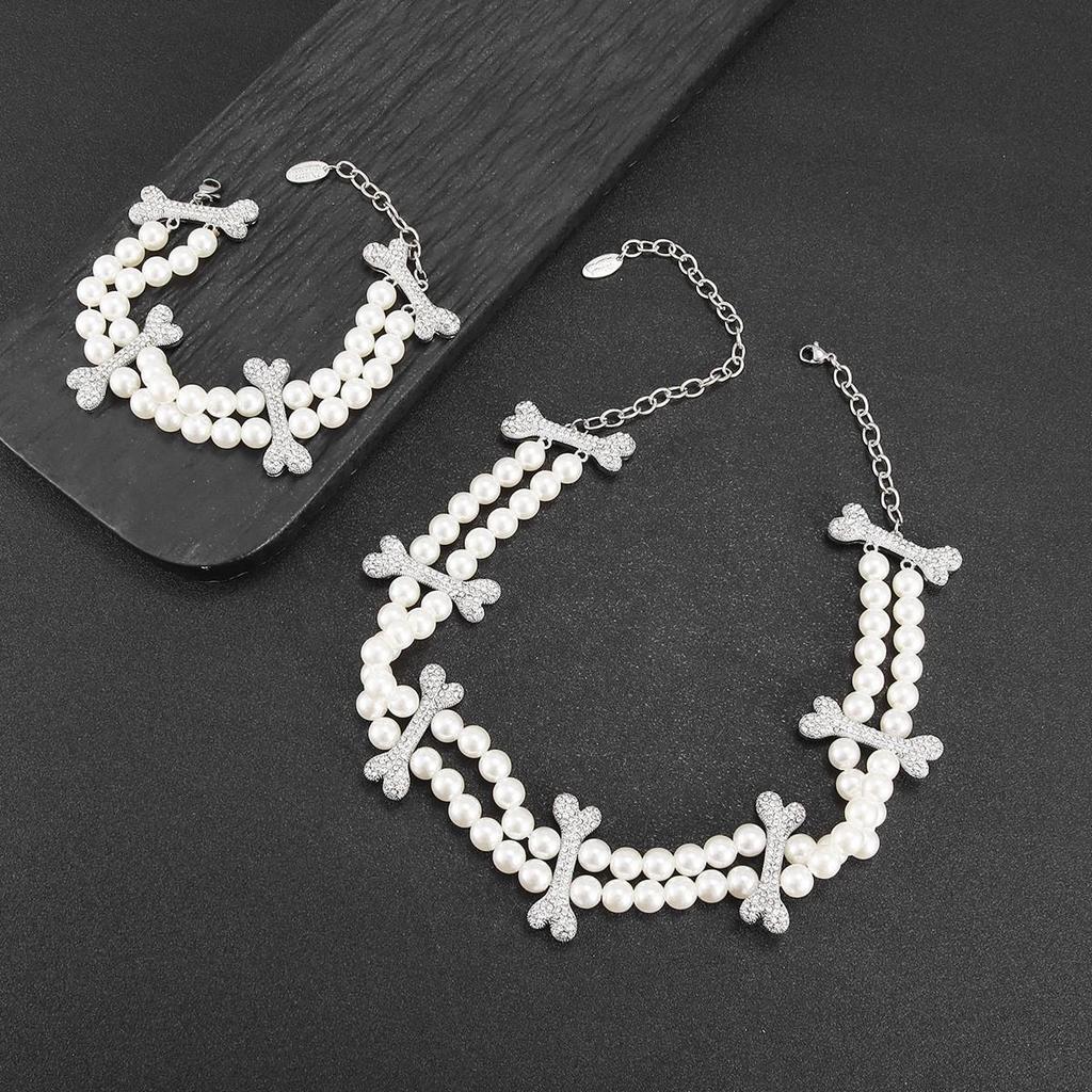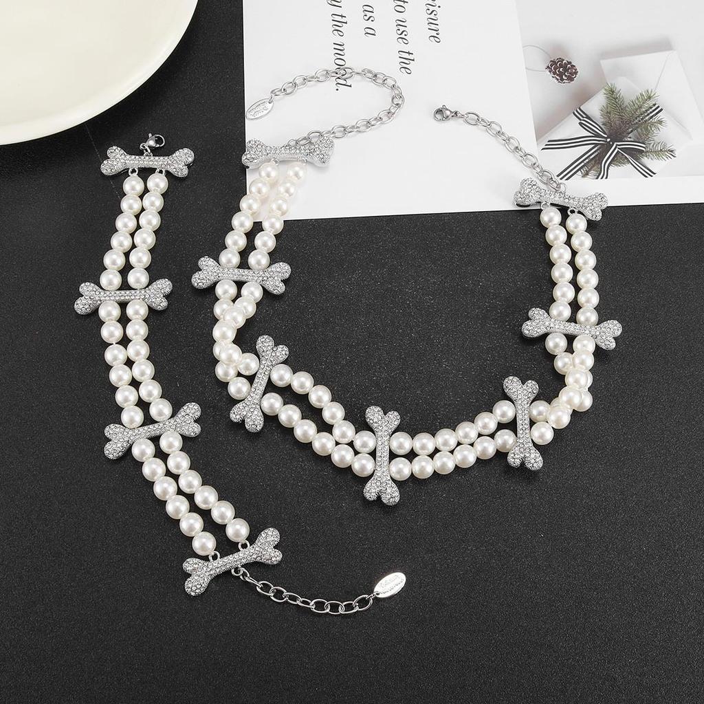 Комплект колье и браслета «Сатурн» с двойным слоем жемчуга и бриллиантов - Ретро-роскошь