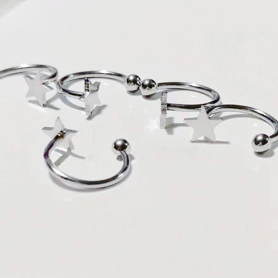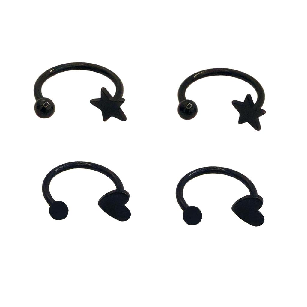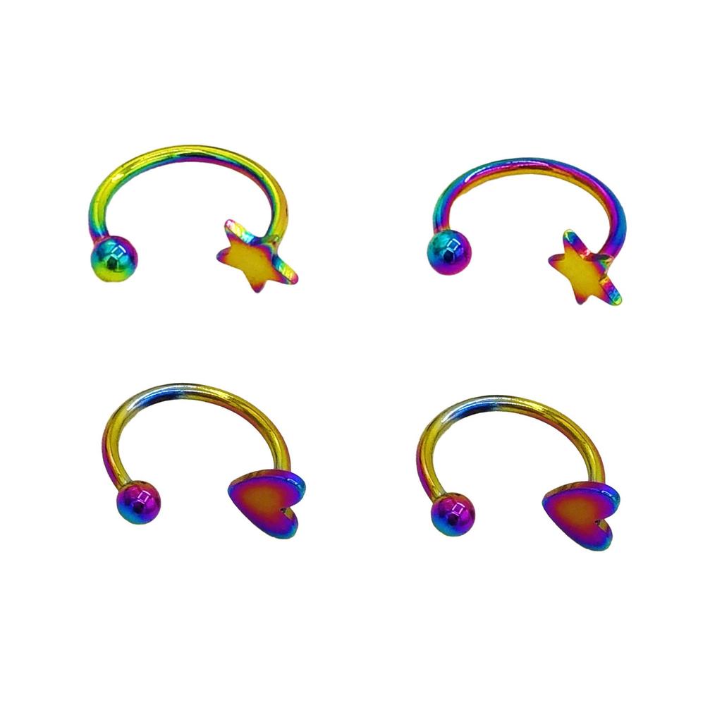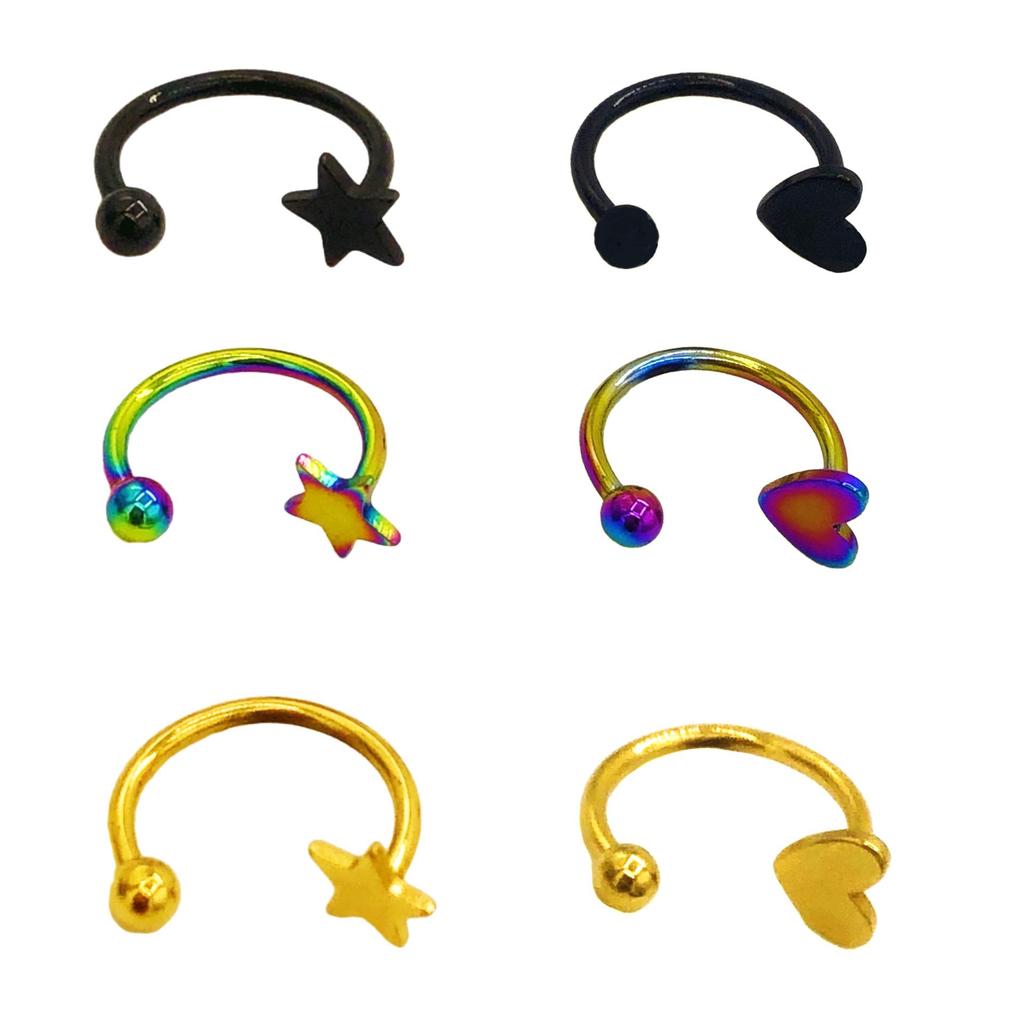 Stainless Steel C-shaped Horseshoe Ring with Pentagram & Heart Design, Removable Ball, External Thread, for Lip or Nose.
