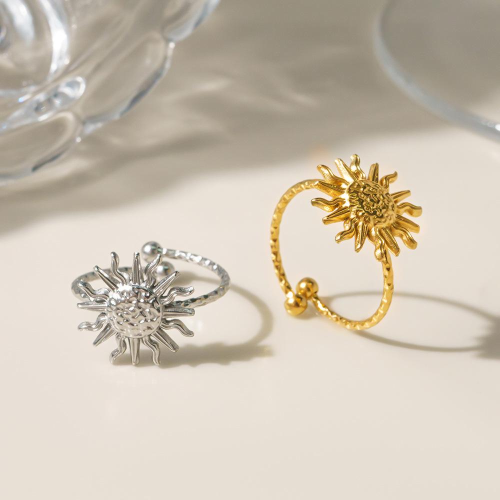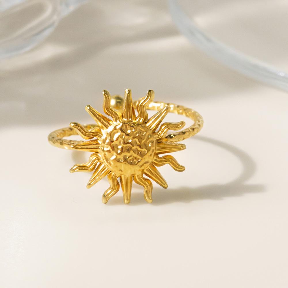 Европейская и американская мода Гальванизированное 18-каратным золотом Кольцо-солнце из нержавеющей стали для женщин