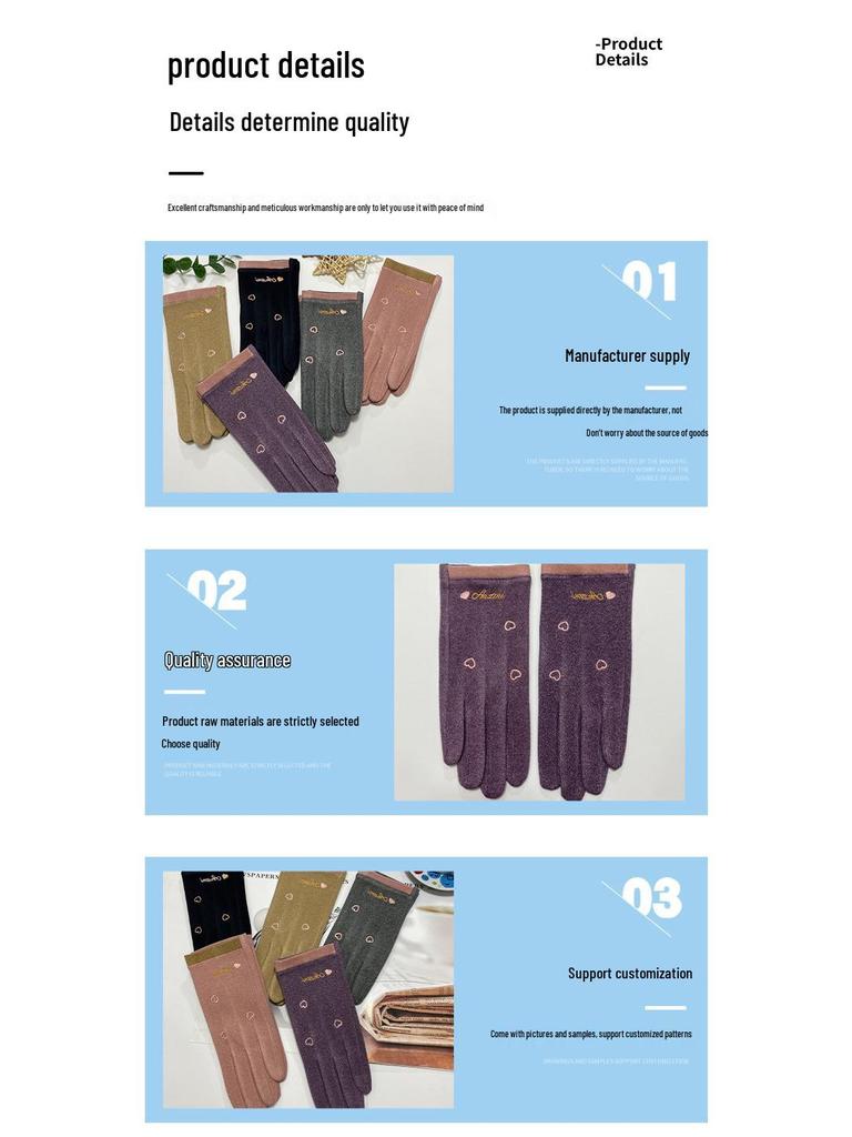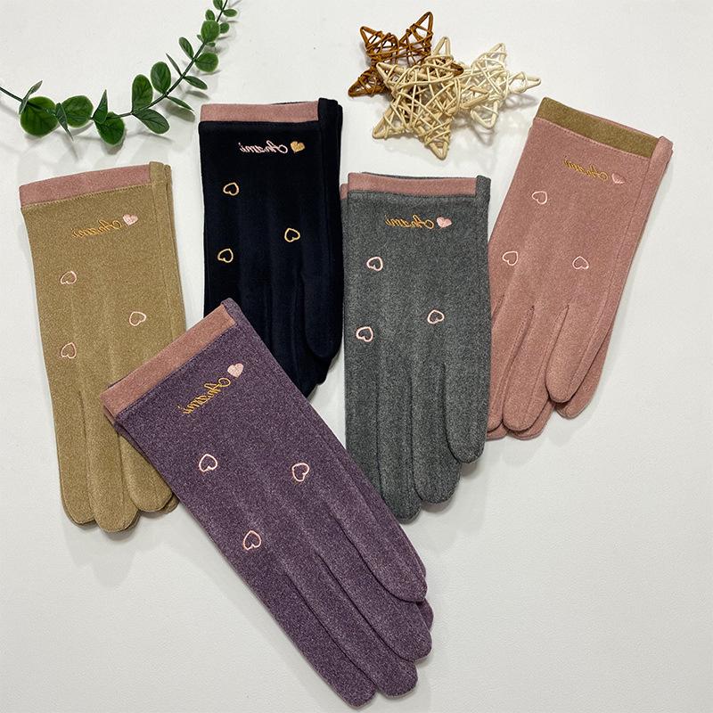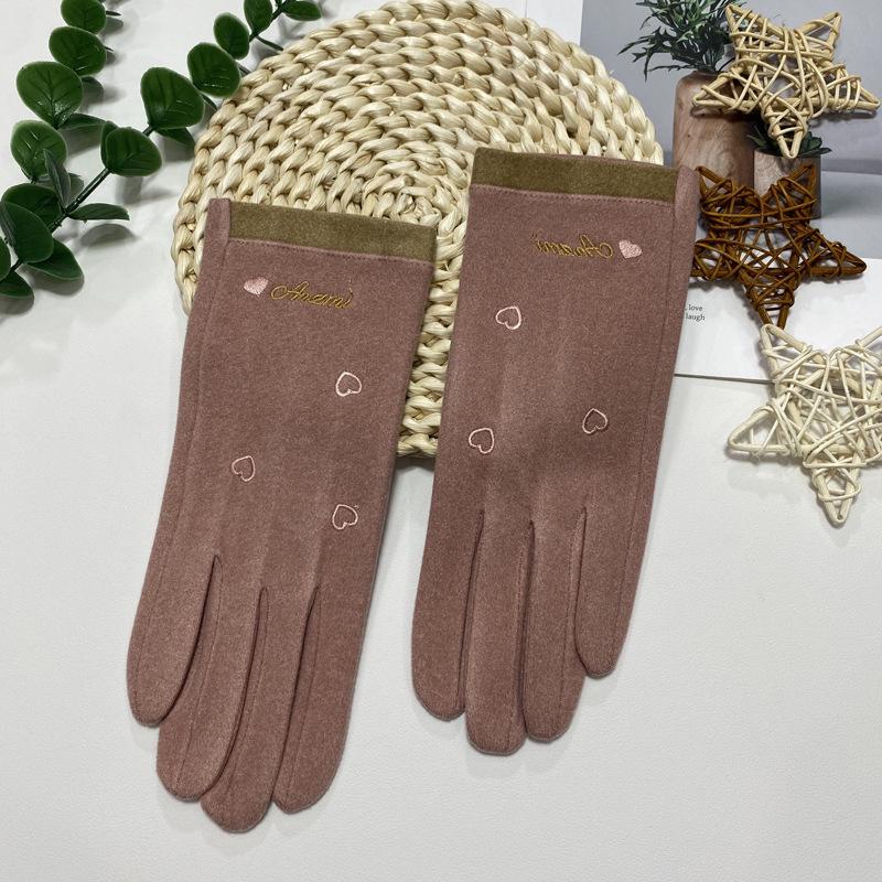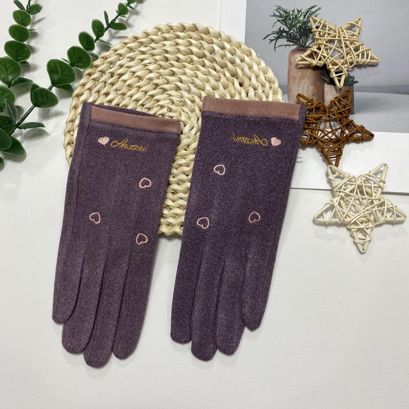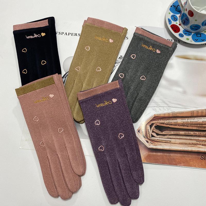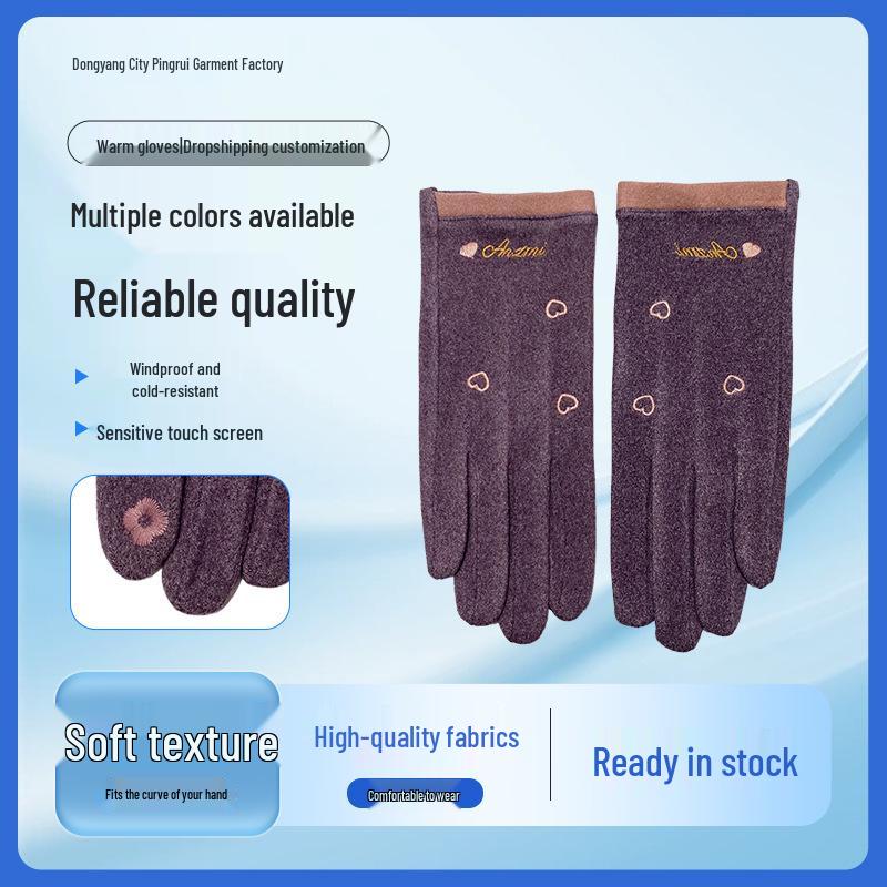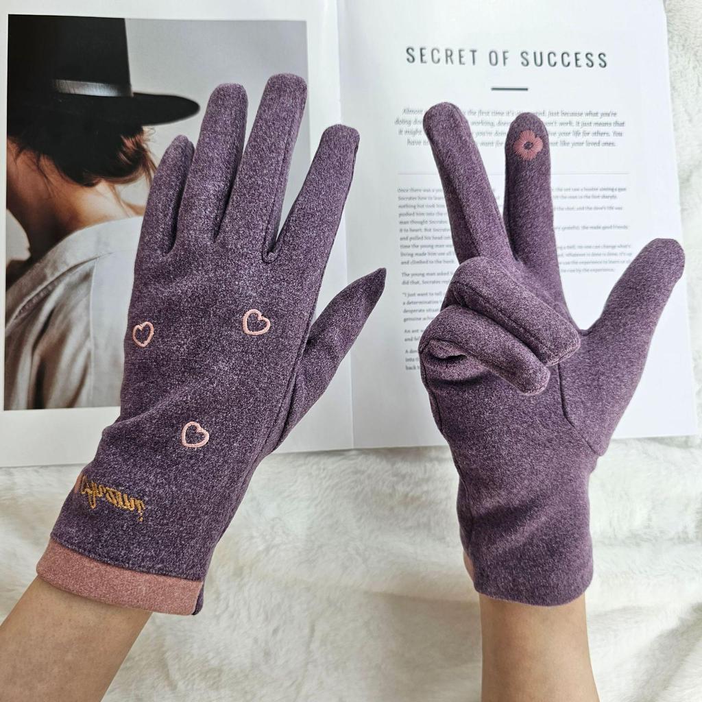 Женские бархатные перчатки с сенсорным экраном: Вышитые, Ветрозащитные, Полные пальцы, Идеально для осенне-зимней езды на велосипеде