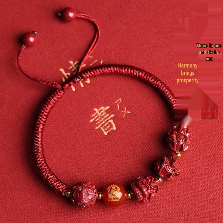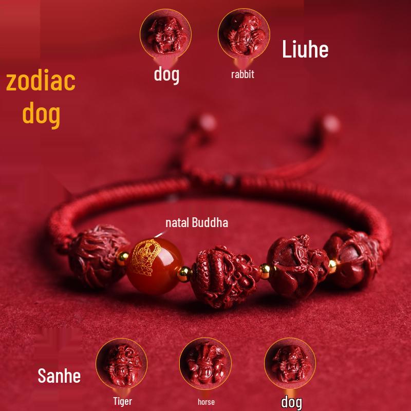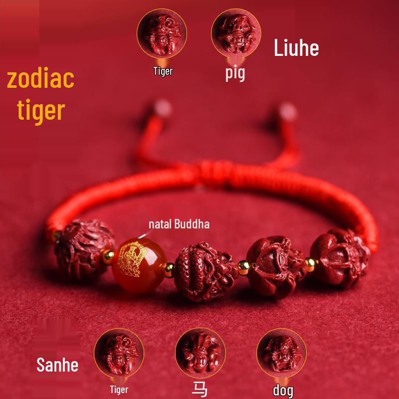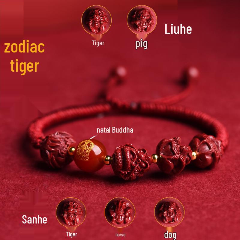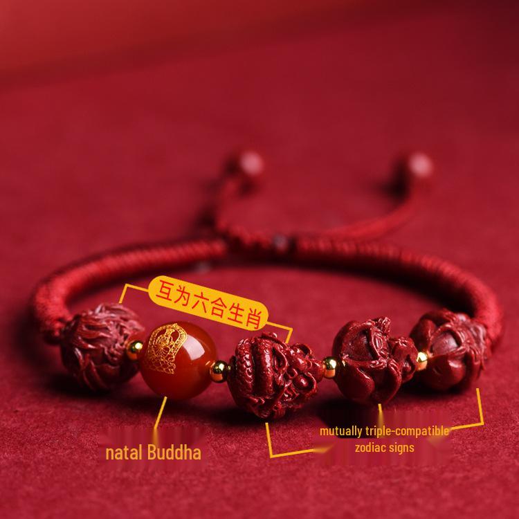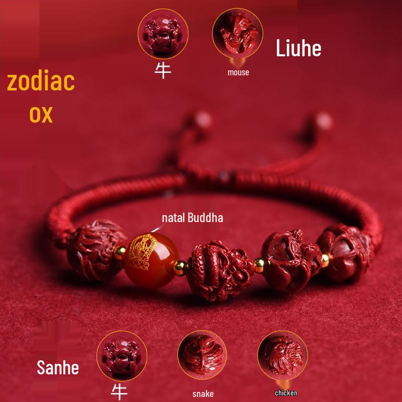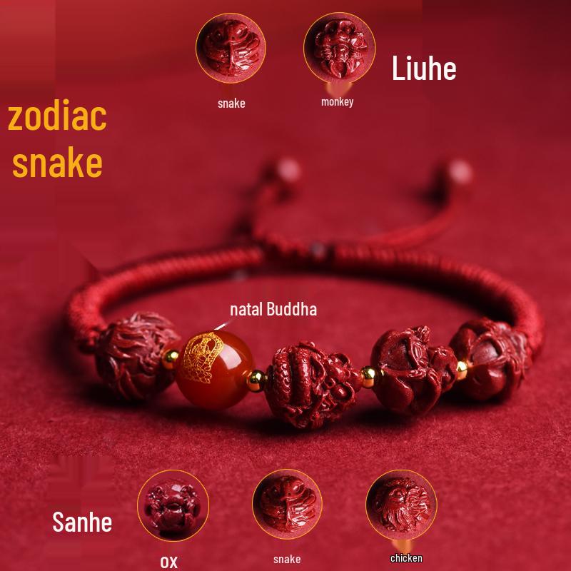 2025 Year of the Snake Cinnabar Zodiac Red String Bracelet - Unisex Benming Year Amulet with Sanhe Liuhe and Buddha Hand Design