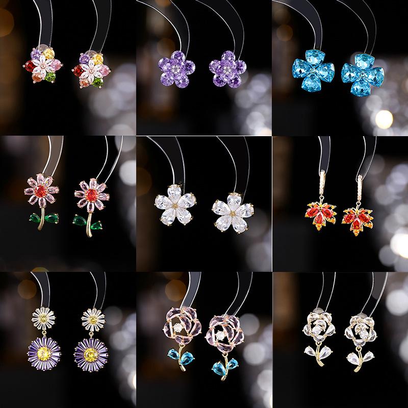 Серьги-гвоздики из серебра 925 пробы с кристаллами в виде цветов, корейский стиль, цирконы высокого класса, милый дофаминовый дизайн для женщин — купить товар онлайн с бесплатной доставкой по всему миру!