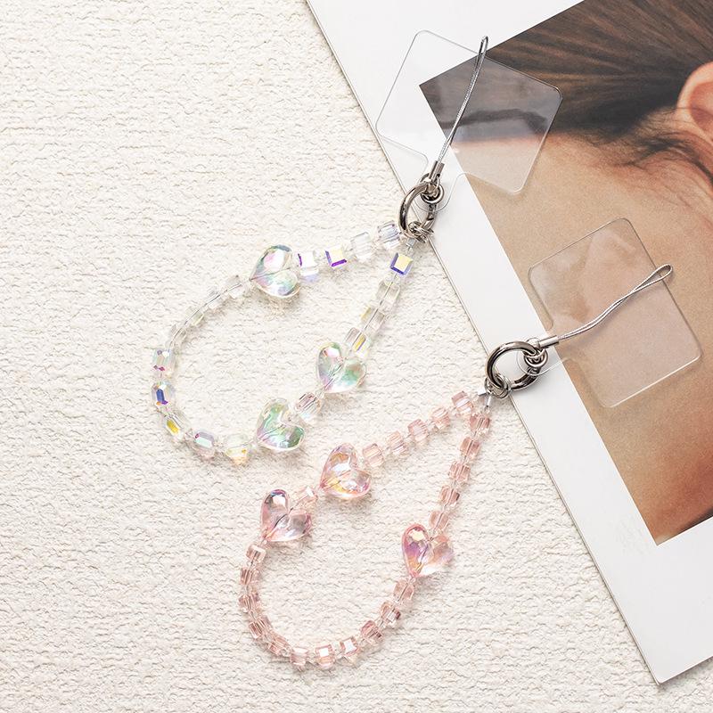 Брелок для мобильного телефона на запястье из хрустальных бусин в форме сердца с металлической пряжкой