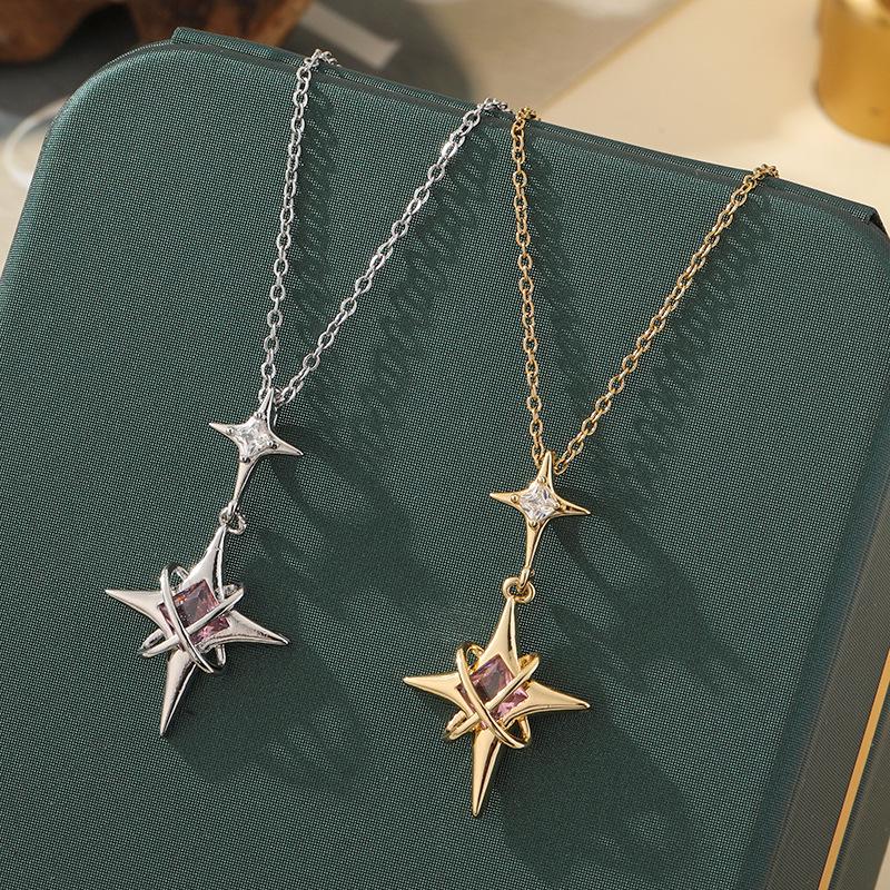 Элегантное ожерелье-подвеска в виде звезды из титановой стали с цирконом - Женская универсальная цепочка для ключицы