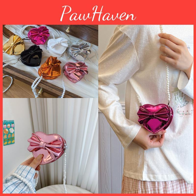 Сумка-клатч в форме сердца, мини, с бантом, жемчужной цепочкой, на молнии, для повседневного использования, в стиле кэжуал