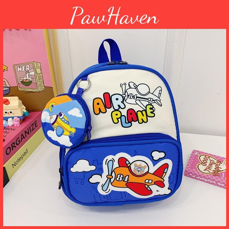 Childrens Backpack With Cartoon Cat And Airplane Print Design For Use Daily — купить товар онлайн с бесплатной доставкой по всему миру!