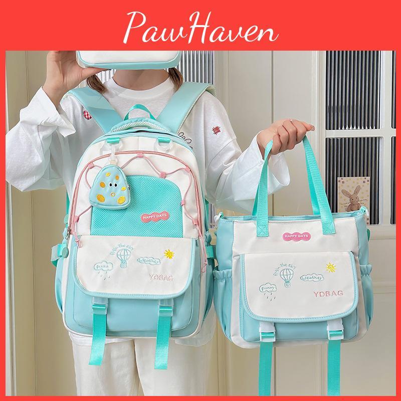Letter Embroidery Cartoon Student Lightweigh Backpack Three Piece For Use School