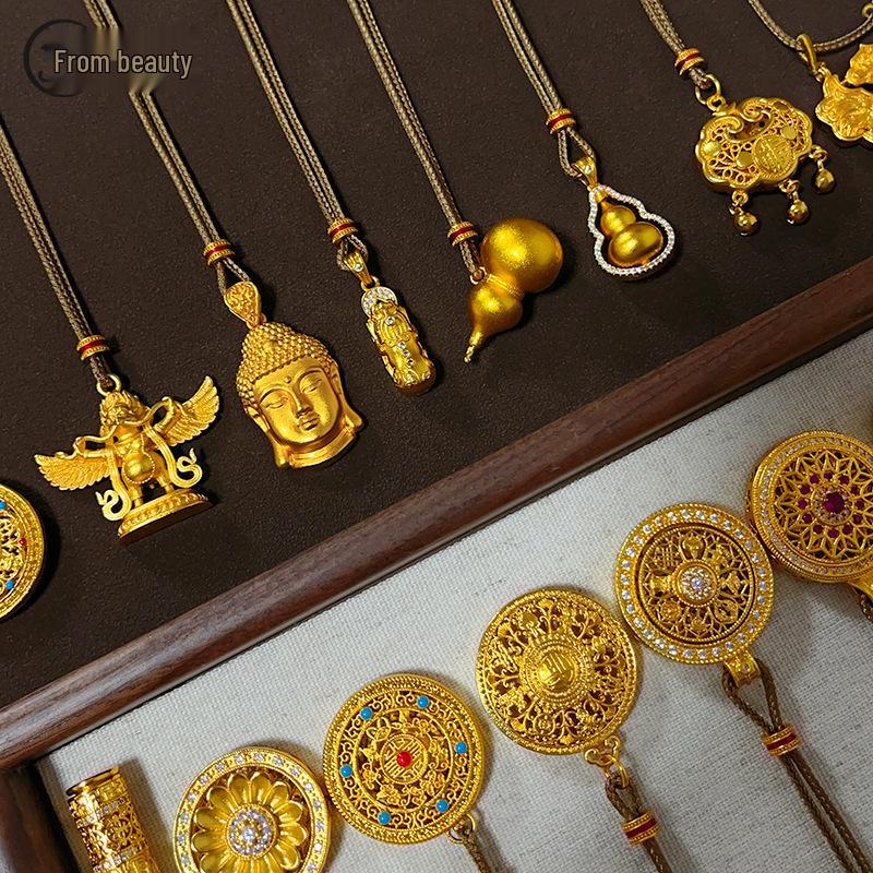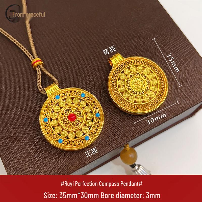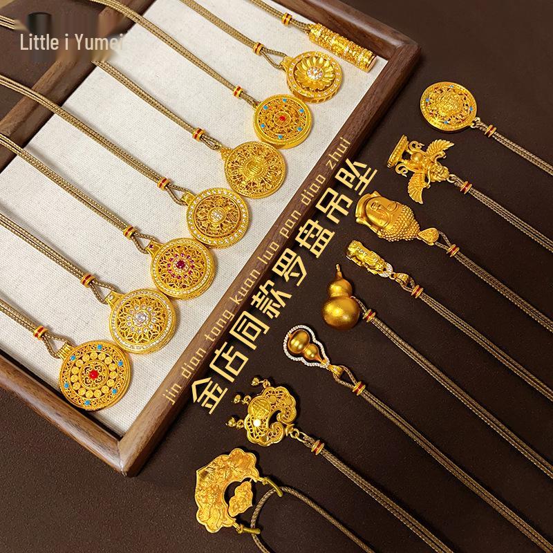 Подвеска-компас «Восемь сокровищ из золотого песка» с подвеской-горлянкой для женщин