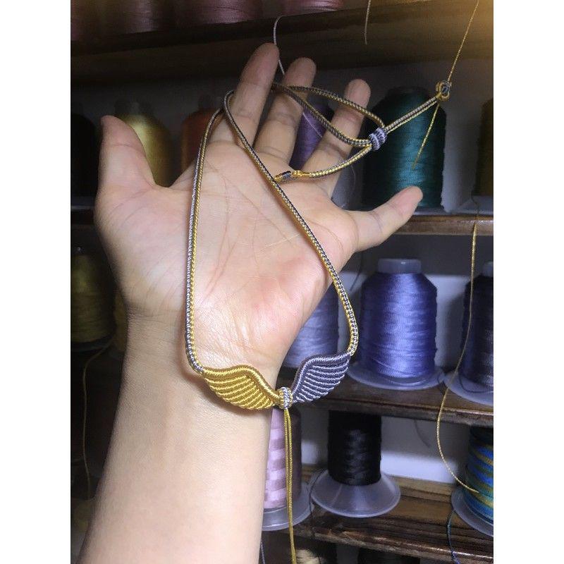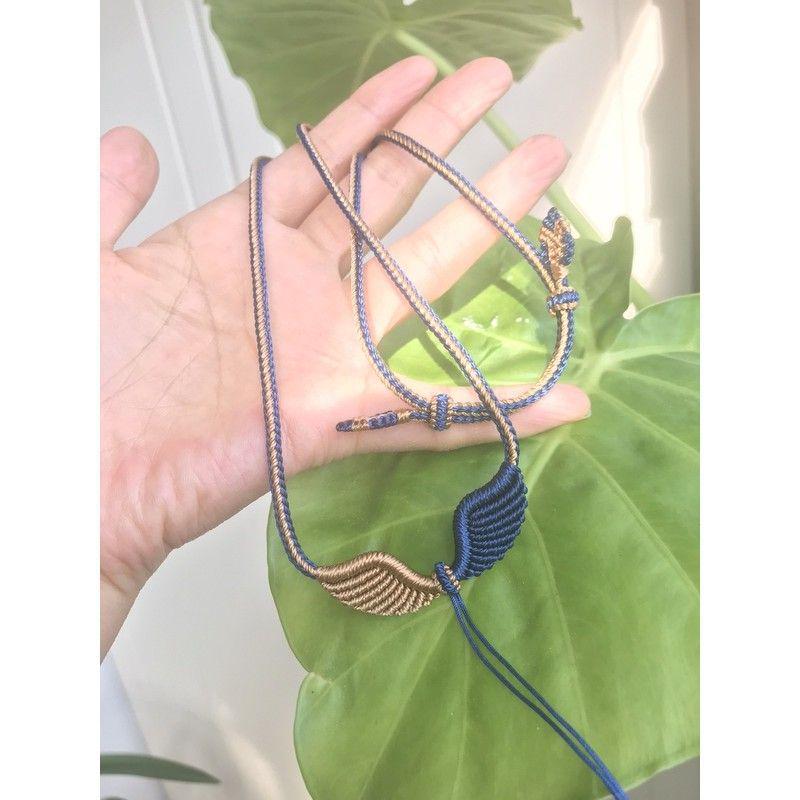 Плетеное колье-подвеска «Крылья ангела» ручной работы со шнурком из веревки