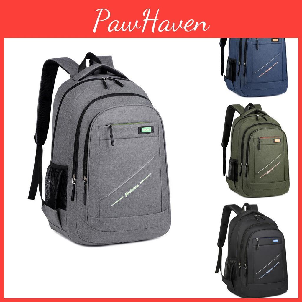 This Oxford cloth backpack features a breathable design with a 16-inch laptop compartment, supporting daily commuting and travel needs. Crafted from durable oxford fabric with embossed leather accents, it measures approximately 32*48*18cm and has a capacity of 36 to 55 liters. The backpacks curved shoulder straps ensure comfortable wear during extended use. Users will appreciate its moisture-resistant material, versatile striped pattern, and spacious interior for essentials. Wipe clean with a damp cloth to maintain its appearance.