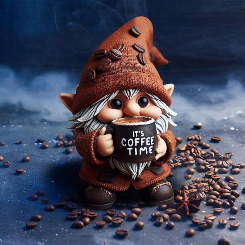 Милая фигурка гнома с кофе, уникальное настольное украшение, миниатюрная скульптура для микроландшафта, кухня