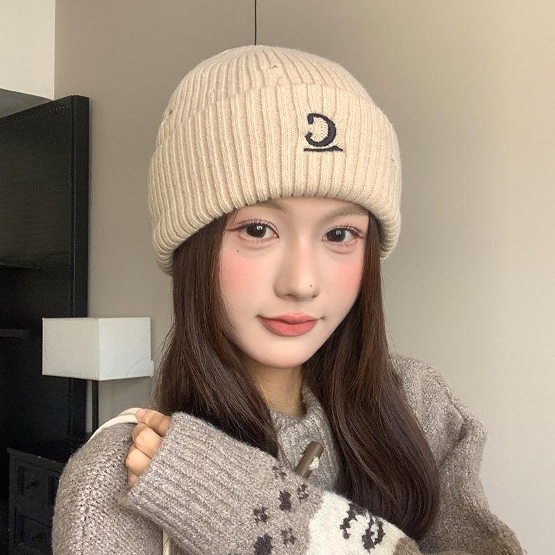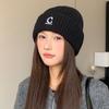 Вязаная шапка с вышивкой букв для женщин на осень и зиму, большой окружности головы, шерстяная шапка, утолщенная, теплая, с защитой ушей, пуловер, холодная шапка