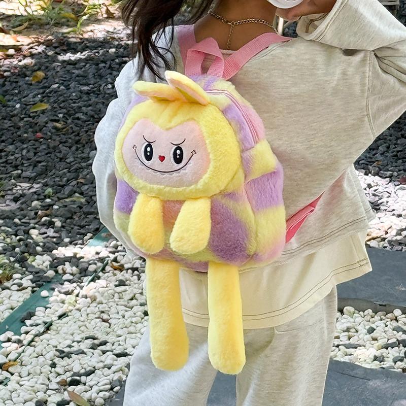 Этот плюшевый рюкзак изготовлен из мягкого полиэстера с яркими мультяшными узорами, сочетая игривый дизайн с практичным использованием.. Приблизительно 25*23*6 см, он поддерживает предметы до ноутбуков и выдерживает до. Идеально подходит для повседневной носки, обеспечивает легкий комфорт благодаря изогнутым плечевым лямкам.. Для ухода протирайте влажной тканью.