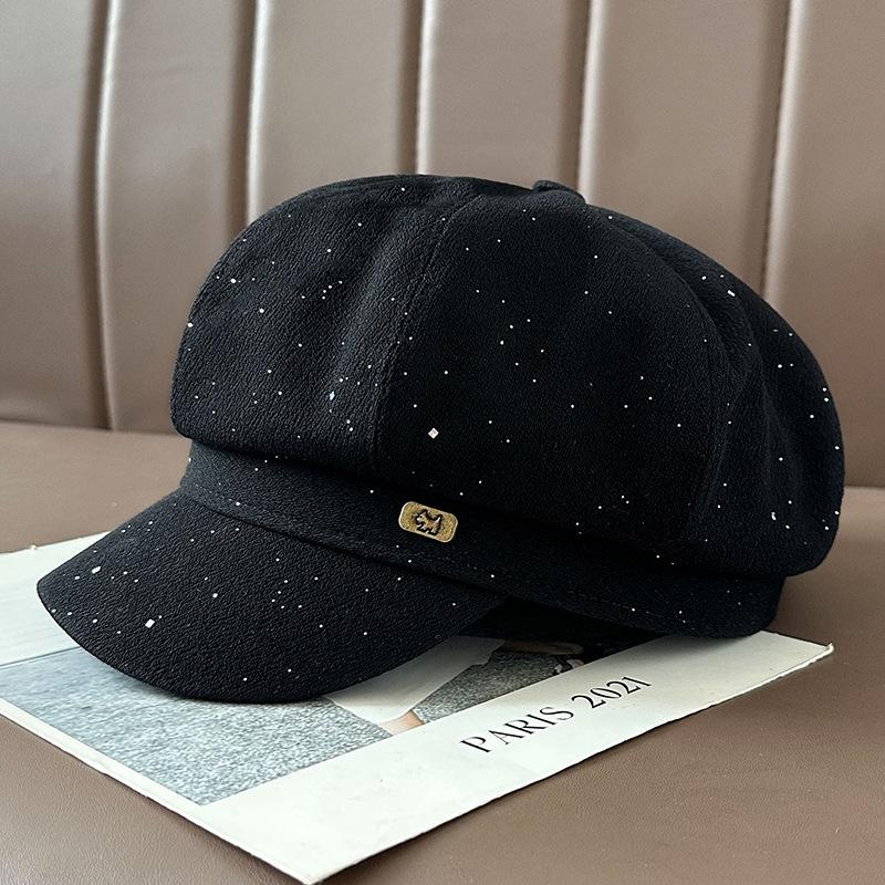 Британский стиль Ретро Восьмиугольная шляпа с пайетками для женщин Осень-Зима Этикетка с щенком Шляпа художника Мода для путешествий Темперамент Берет