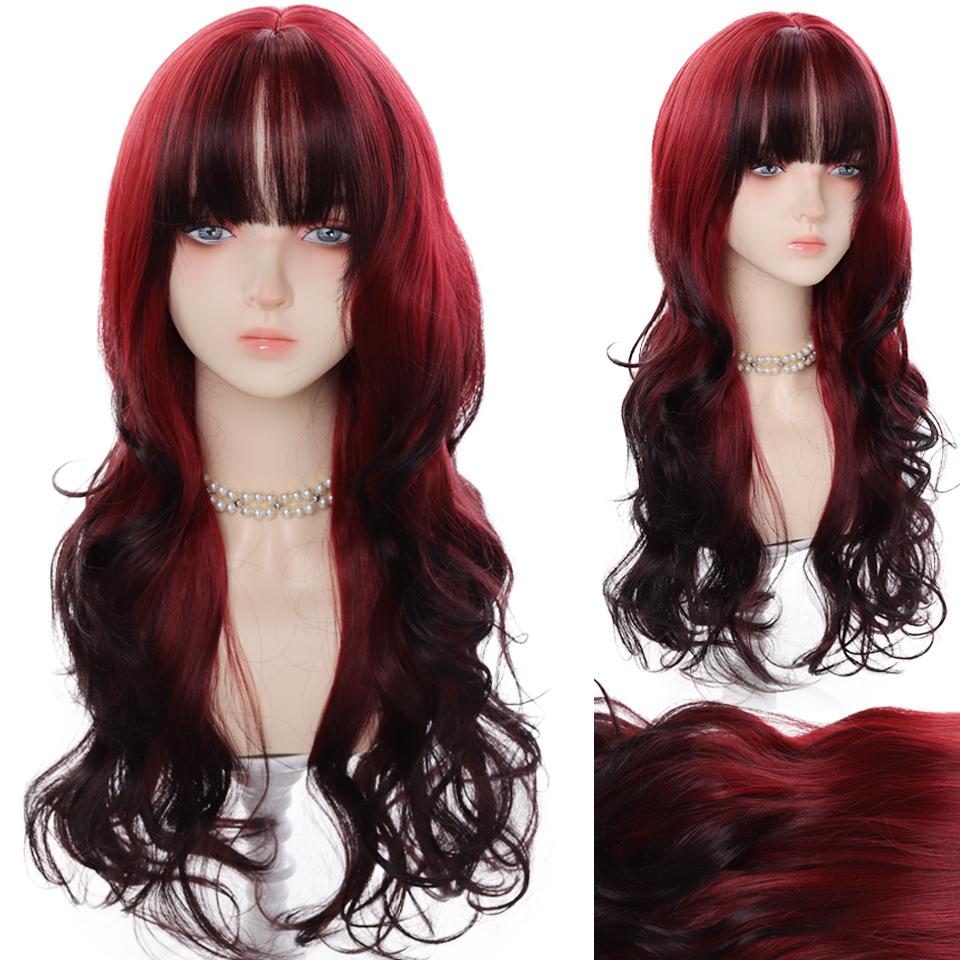 Постепенный синтетический кудрявый парик парик Лолиты волнистые длинные кудрявые волосы с челкой подходит для ежедневной носки дамам и девушкам на праздники