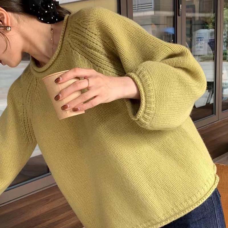Свитер для женщин Осень Зима Утепленный Теплый Однотонный Вязаный Эластичный С длинным рукавом Топы