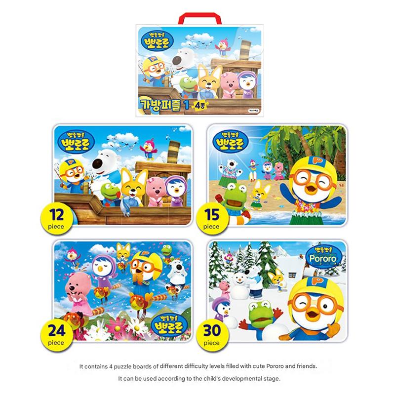 Пороро + Друзья Развивающий Набор Пазлов; 2 типа × 4 уровня; Прочный ламинированный картон / Легко хранить и переносить; Из Кореи
