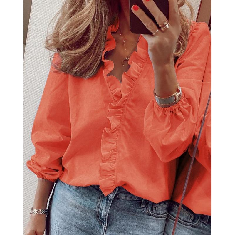 Женские модные повседневные весенне-осенние однотонные блузки и рубашки с v-образным вырезом и длинным рукавом с принтом
