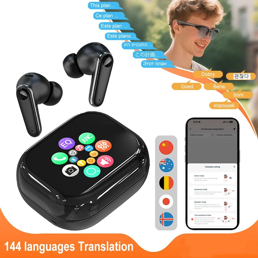 Наушники с ИИ-переводом в реальном времени, полноцветный смарт-экран, беспроводные наушники Bluetooth 5.4, шумоподавление ANC ENC, Hi-Fi, водонепроницаемые наушники для Android и iOS