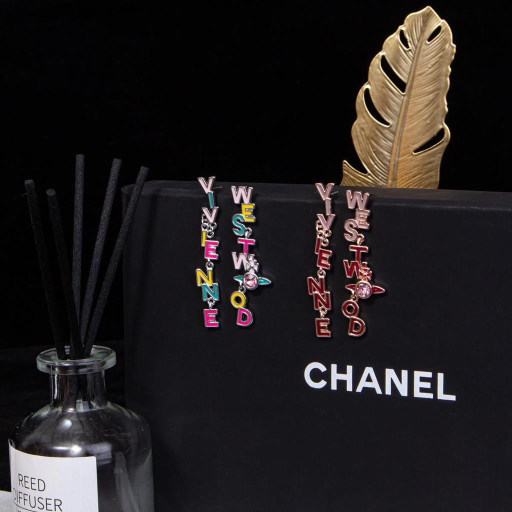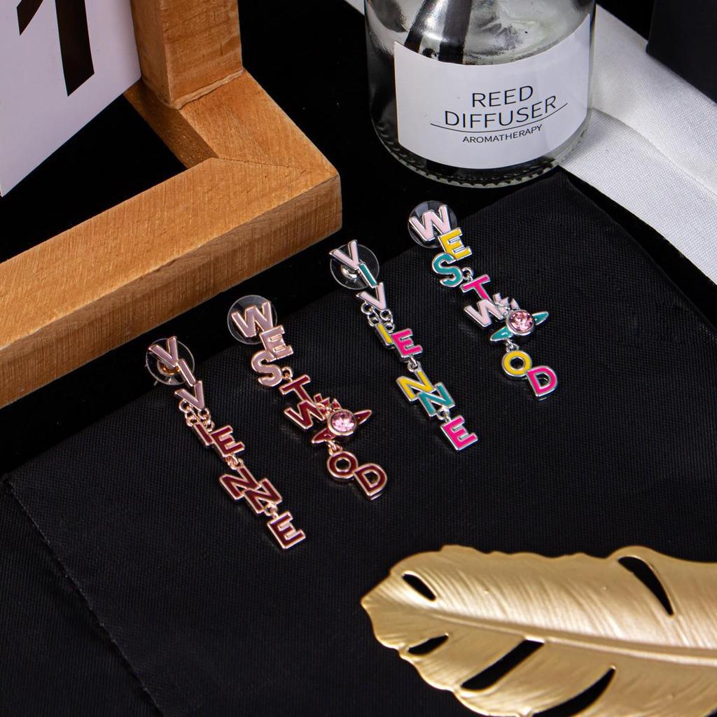 Серьги-пусеты NANA Style Vivienne Westwood Асимметричные Сатурн с подвеской Капля Масло Бриллиант Буква
