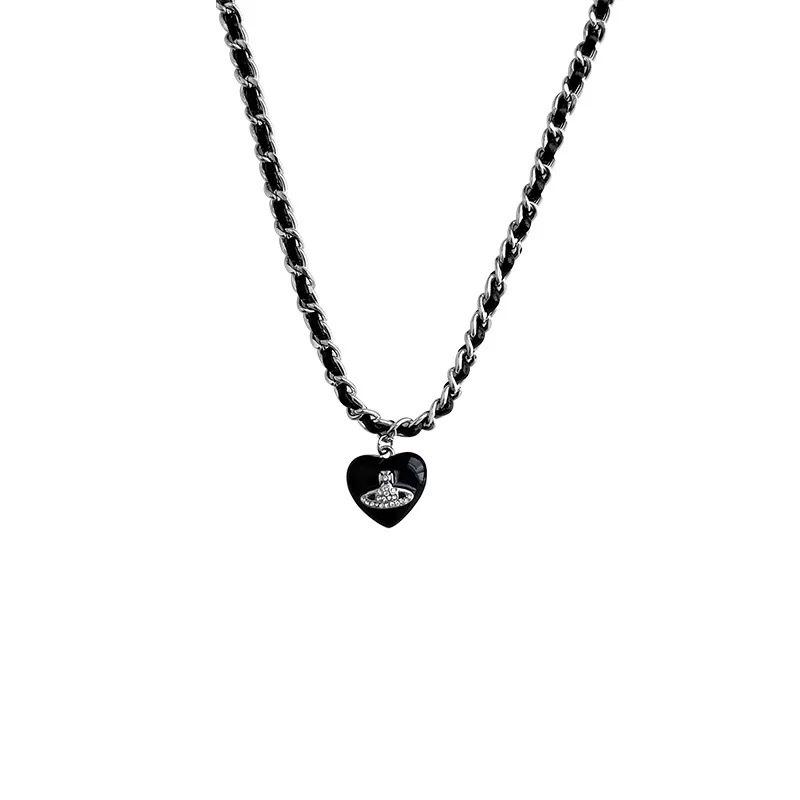 Кожаное ожерелье Vivienne Westwood с сердцем и Сатурном - Женский чокер на ключицы «Императрица-вдова Цыси»