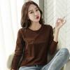 Осень Зима Длинный Рукав Вышивка Букв Приталенная Базовая Футболка Женская Большого Размера Топ Хлопковый Стиль