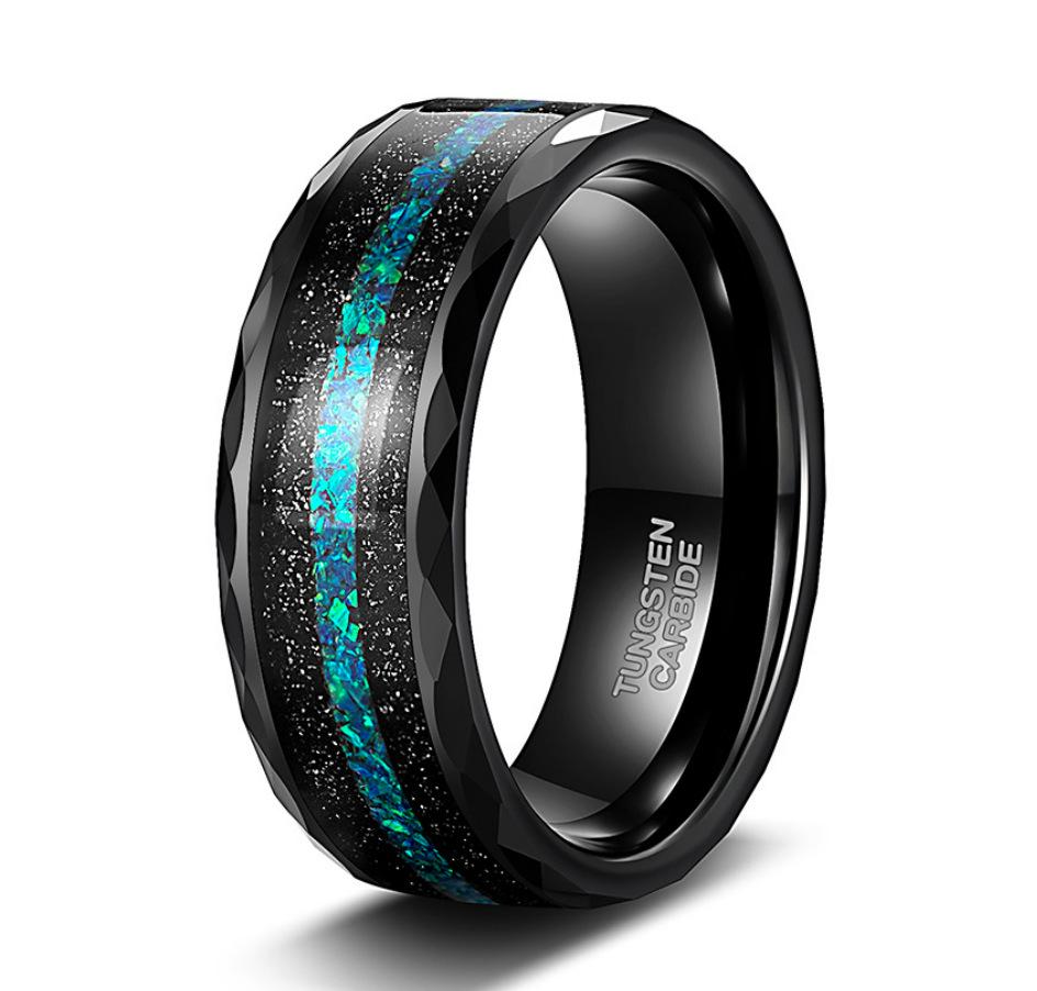 Мужское вольфрамовое кольцо 8 мм «Звездное небо» с инкрустацией опалом и черным кристаллом — купить товар онлайн с бесплатной доставкой по всему миру!