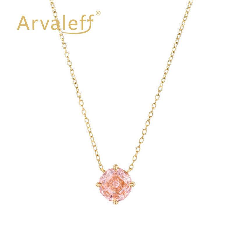 Arvaleff S925 Стерлинговое серебро и 14-каратное золото Циркониевое ожерелье с бриллиантами - Розовая трансграничная модная ключичная цепочка