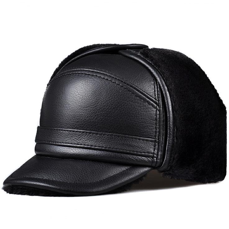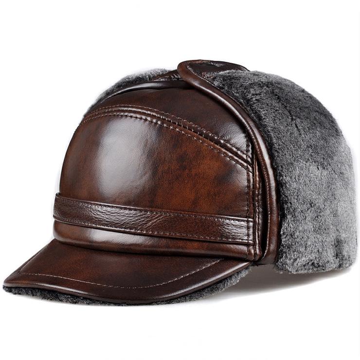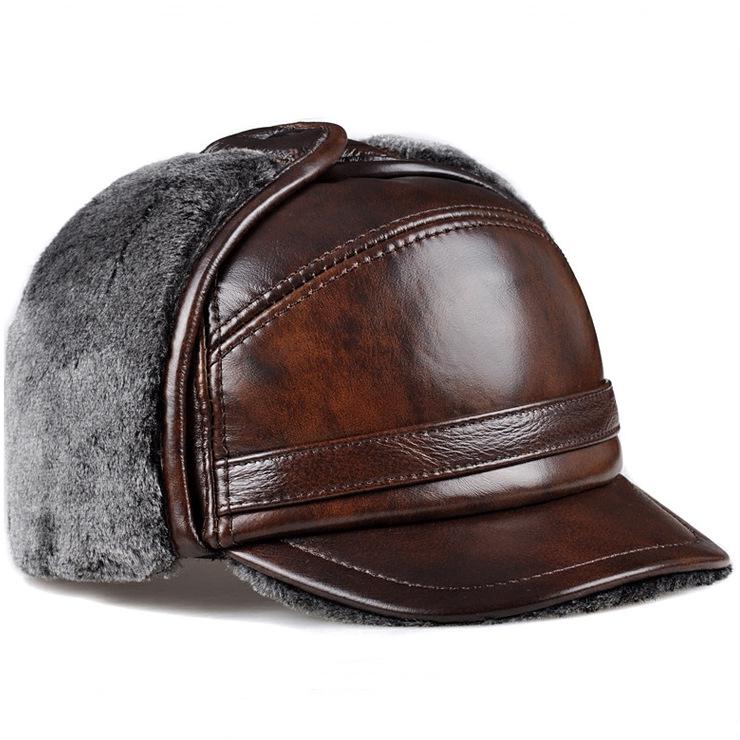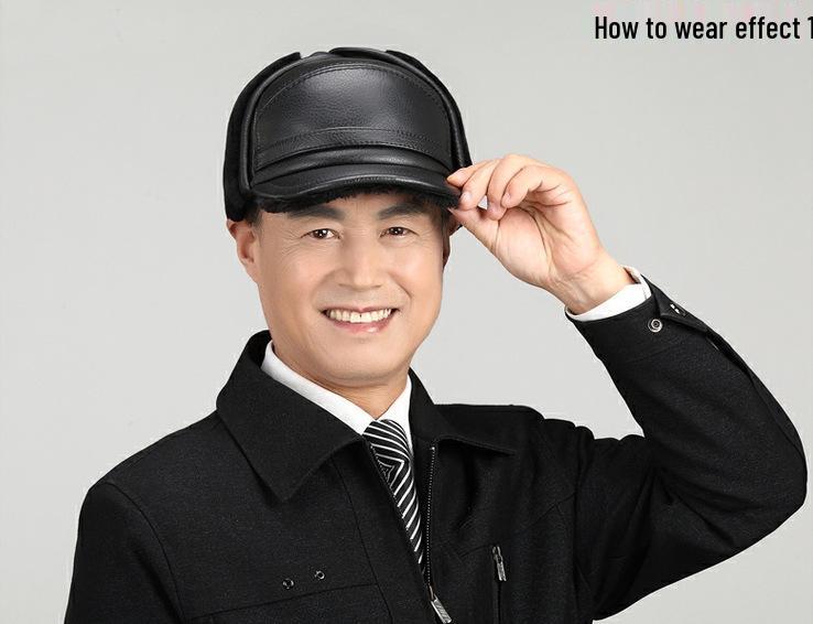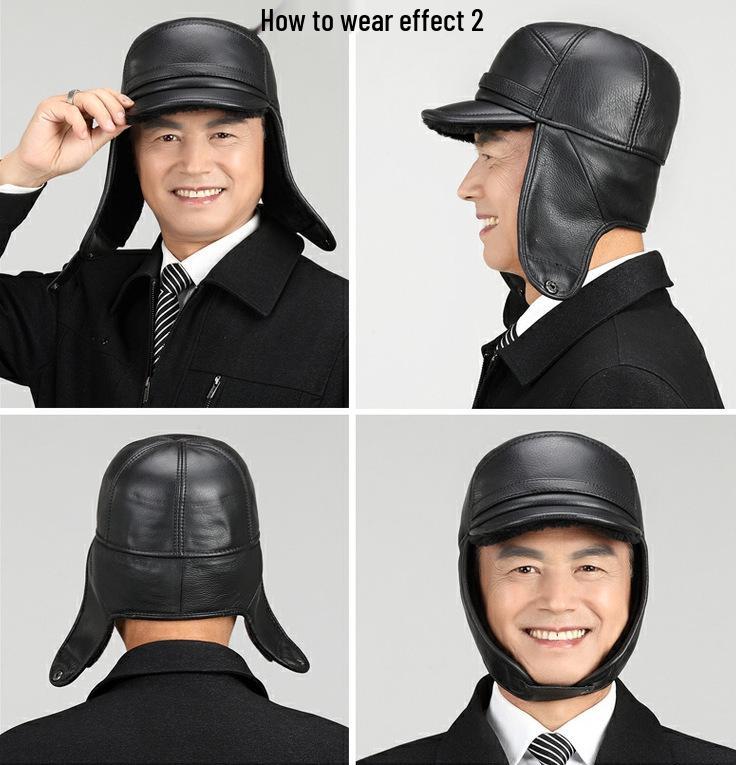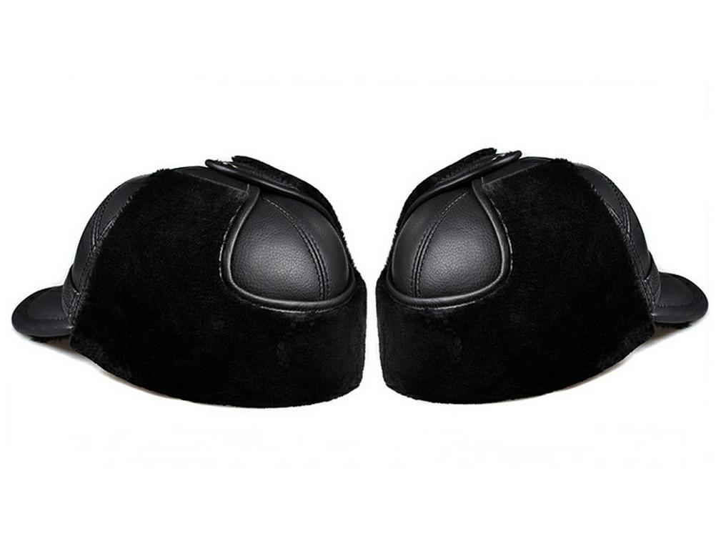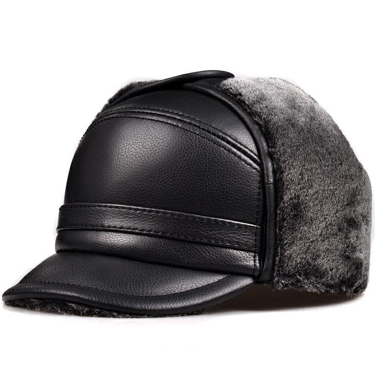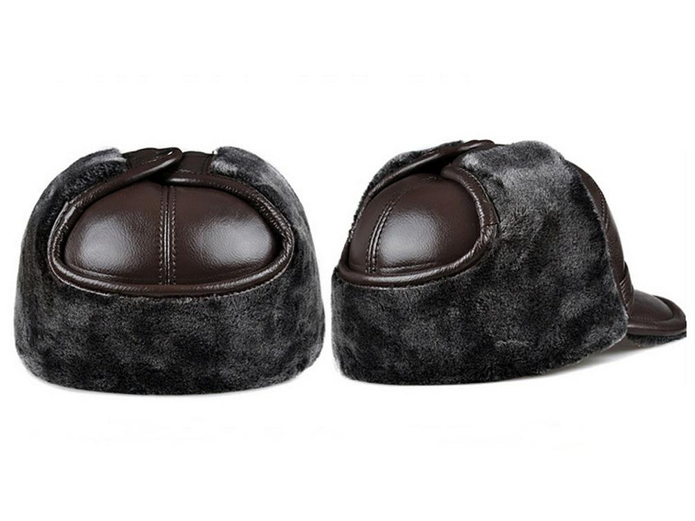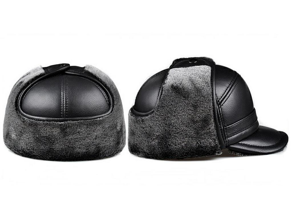 Мужская зимняя шапка из натуральной кожи с защитой ушей и бархатной подкладкой для пожилых людей
