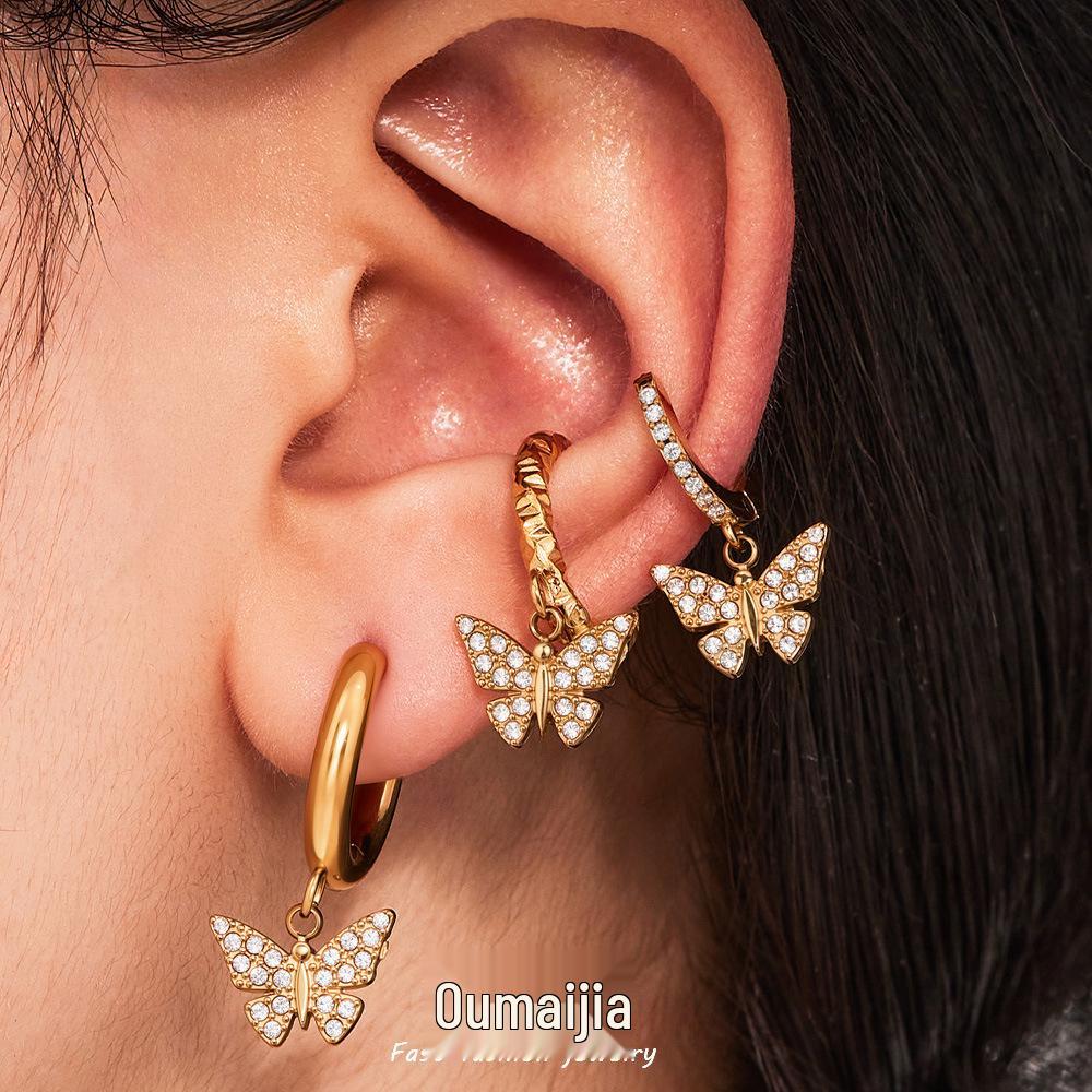 Oumika Позолоченные серьги-бабочки с бриллиантами для женщин — купить товар онлайн с бесплатной доставкой по всему миру!