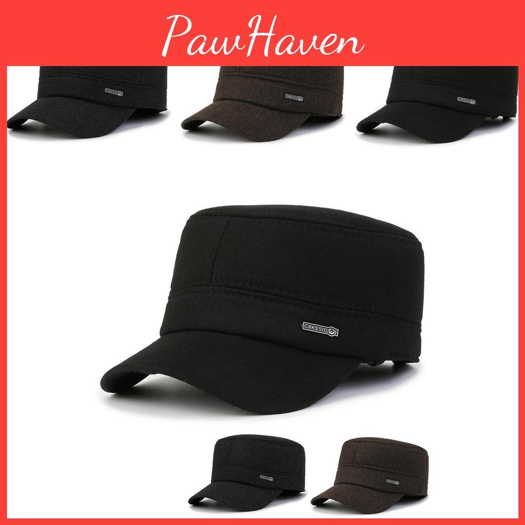 Men Classic Letters Warm Flat Cap Winter Ear Protection Thickened Travel Outdoor