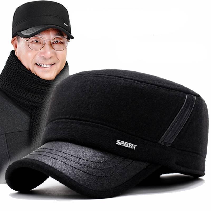 Защита ушей Спортивная шляпа с плоским верхом Для пожилых Ветрозащитная Теплая Шерстяная Утолщенная