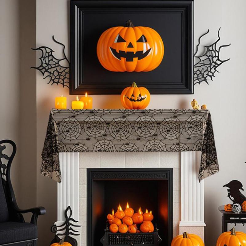 Хэллоуин Черное кружево Дорожка на стол Хэллоуин Украшение стола Череп Мягкая дорожка на стол Украшение для праздничной вечеринки Флаг на стол