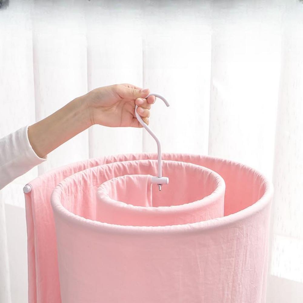 1. Спиральный внешний вид: Эта вешалка для одежды имеет закругленную спиральную конструкцию для кругового развешивания, красивый и элегантный внешний вид и края без заусенцев, которые не повредят простыни и одеяла..