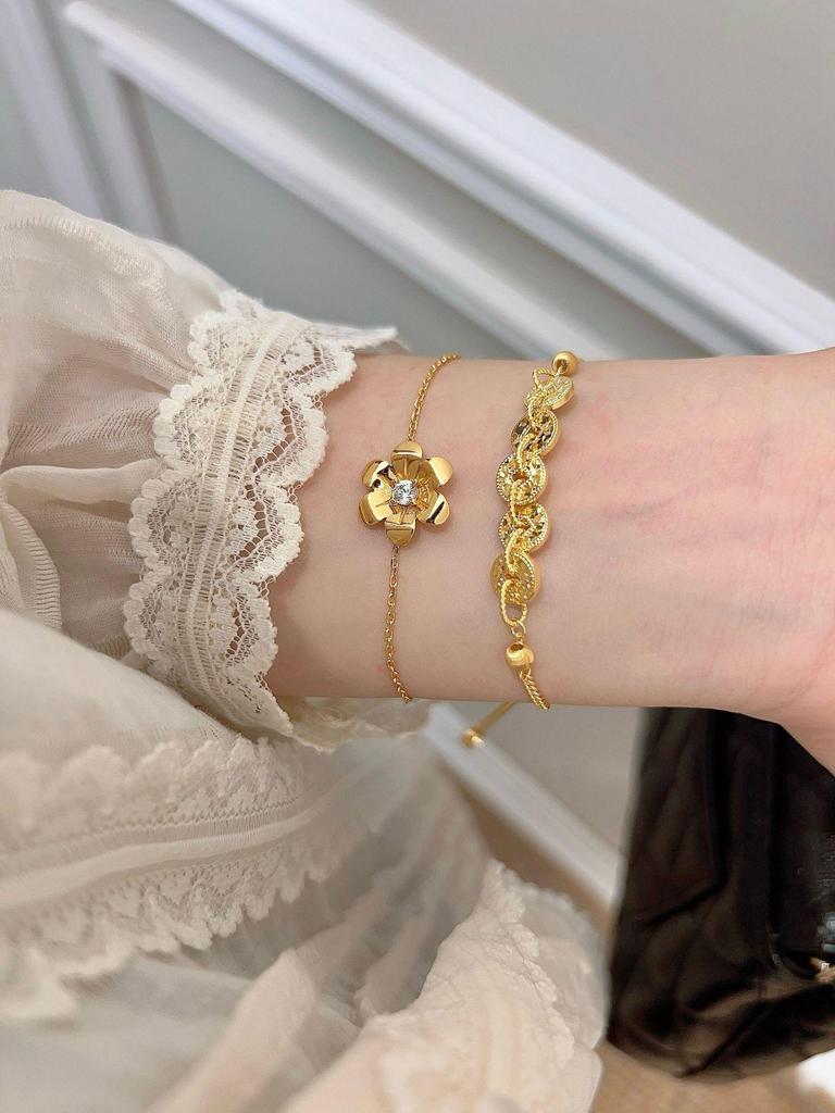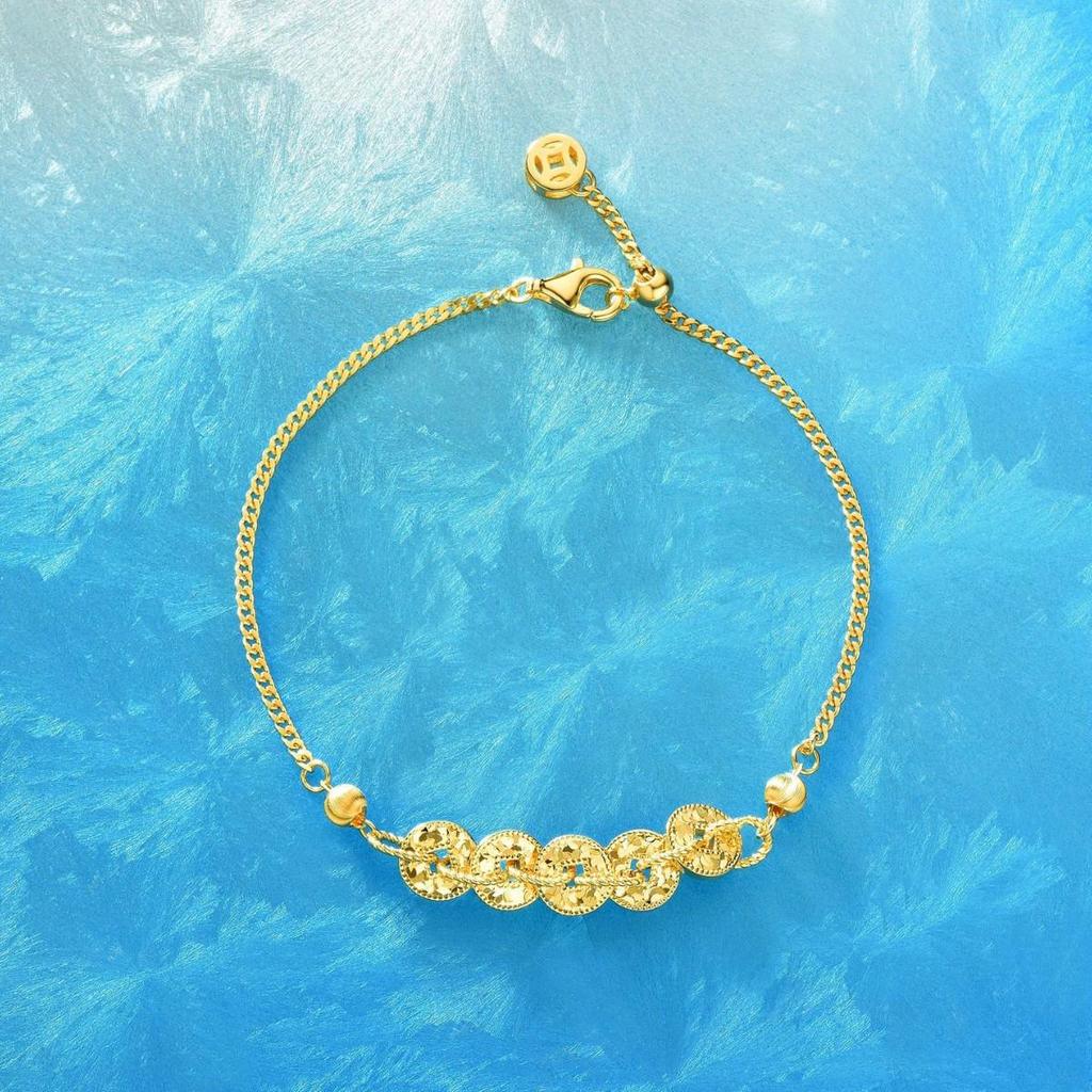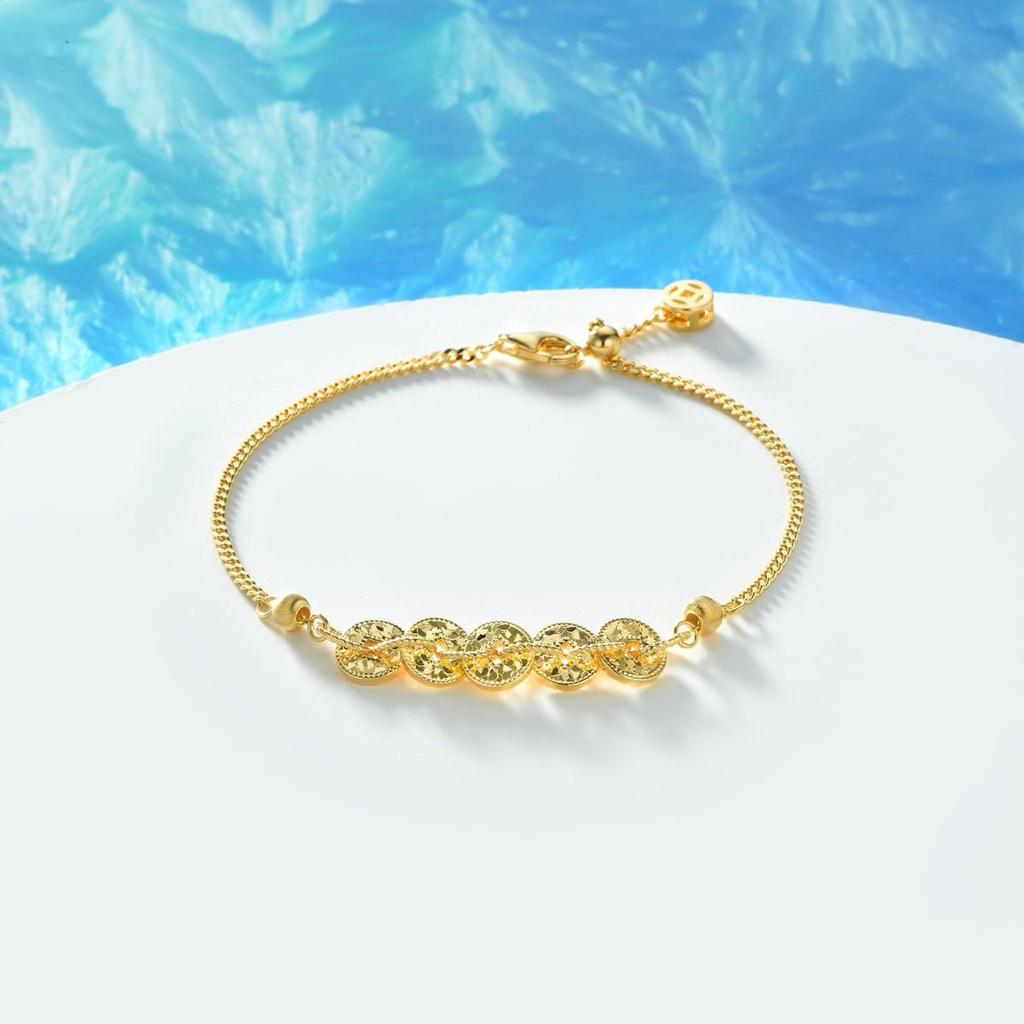Роскошный китайский браслет из серебра 925 пробы «Пять императорских монет» с сияющим льдом – Привлекающий богатство блестящий золотой для женщин