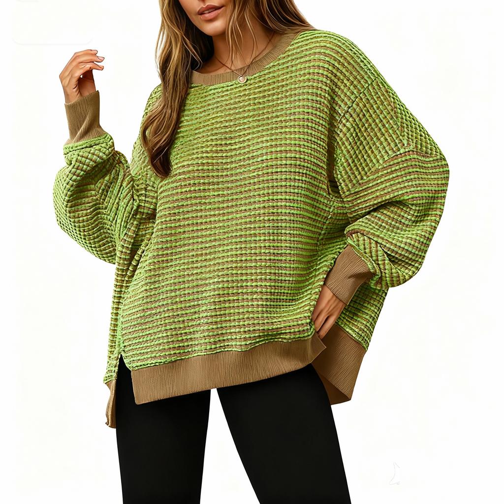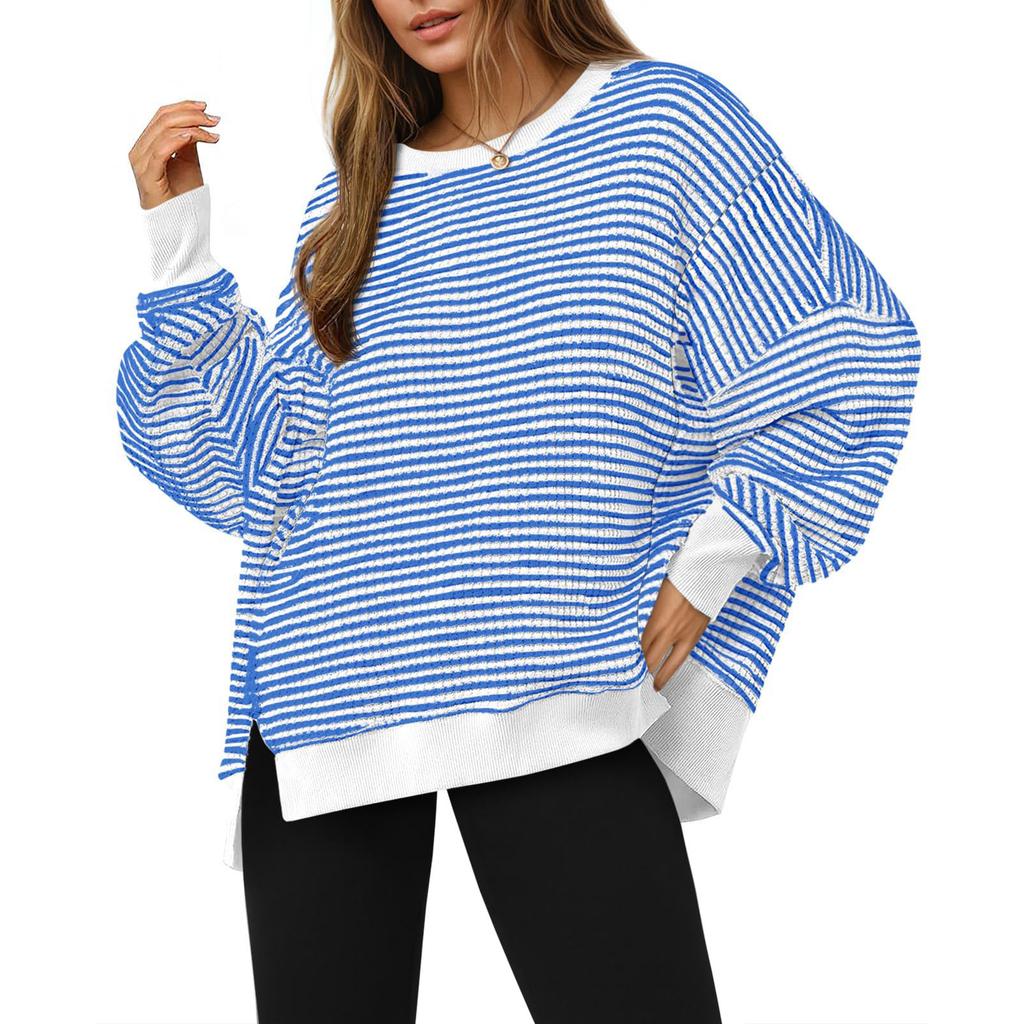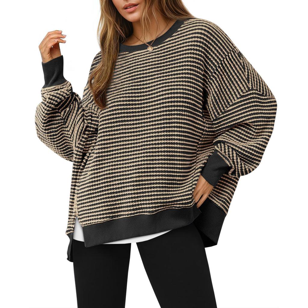 Женский лонгслив с круглым вырезом, в полоску, универсальный, повседневный, свободный