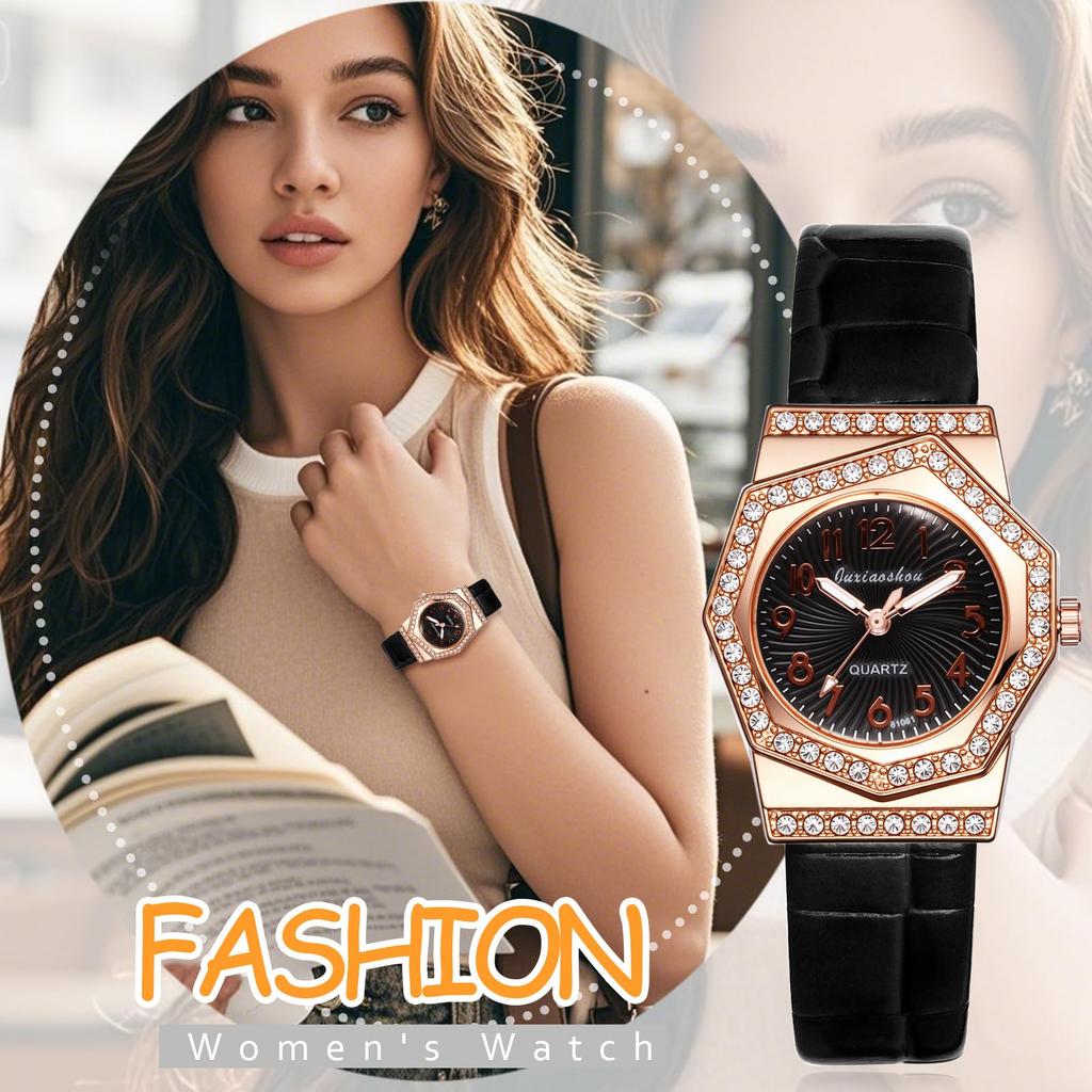 Восьмиугольные водонепроницаемые повседневные арабские стильные сверкающие кварцевые часы с аналоговым дисплеем из нержавеющей стали. Отличный подарок для и дня женские часы