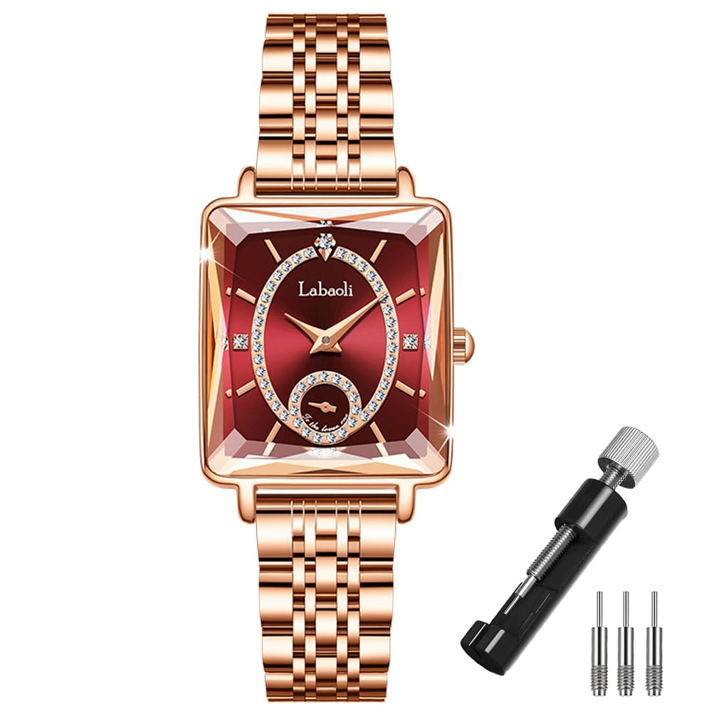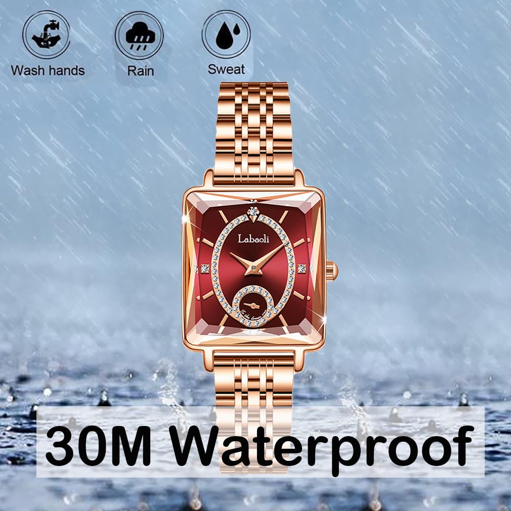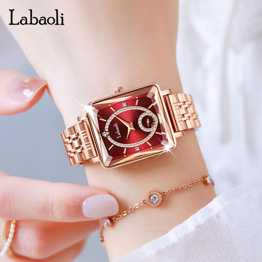 Золотые квадратные наручные часы из нержавеющей стали с красными женскими бриллиантами, водонепроницаемые, простые, стильные, повседневные, деловые, стальные, маленькие, роскошные, подарок,