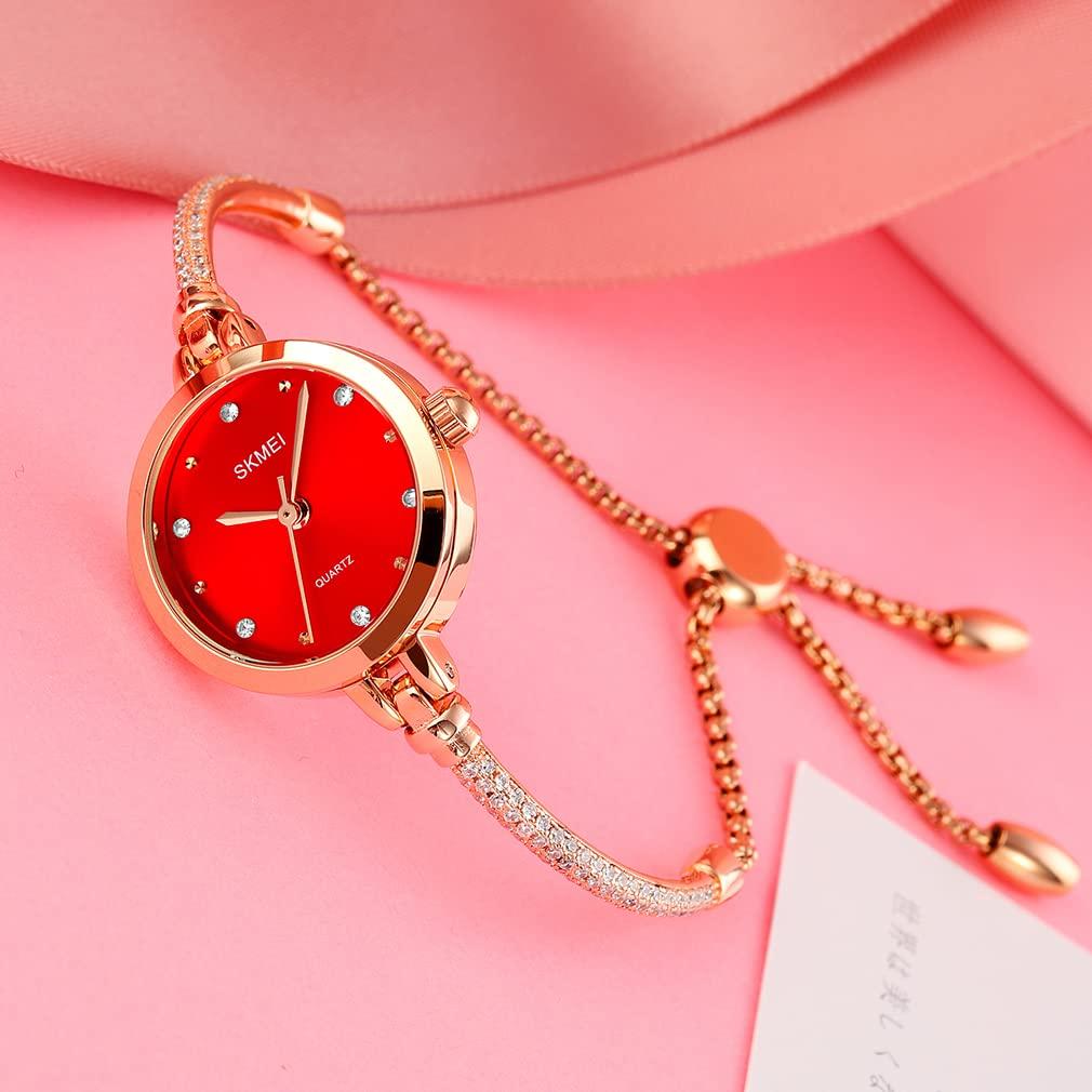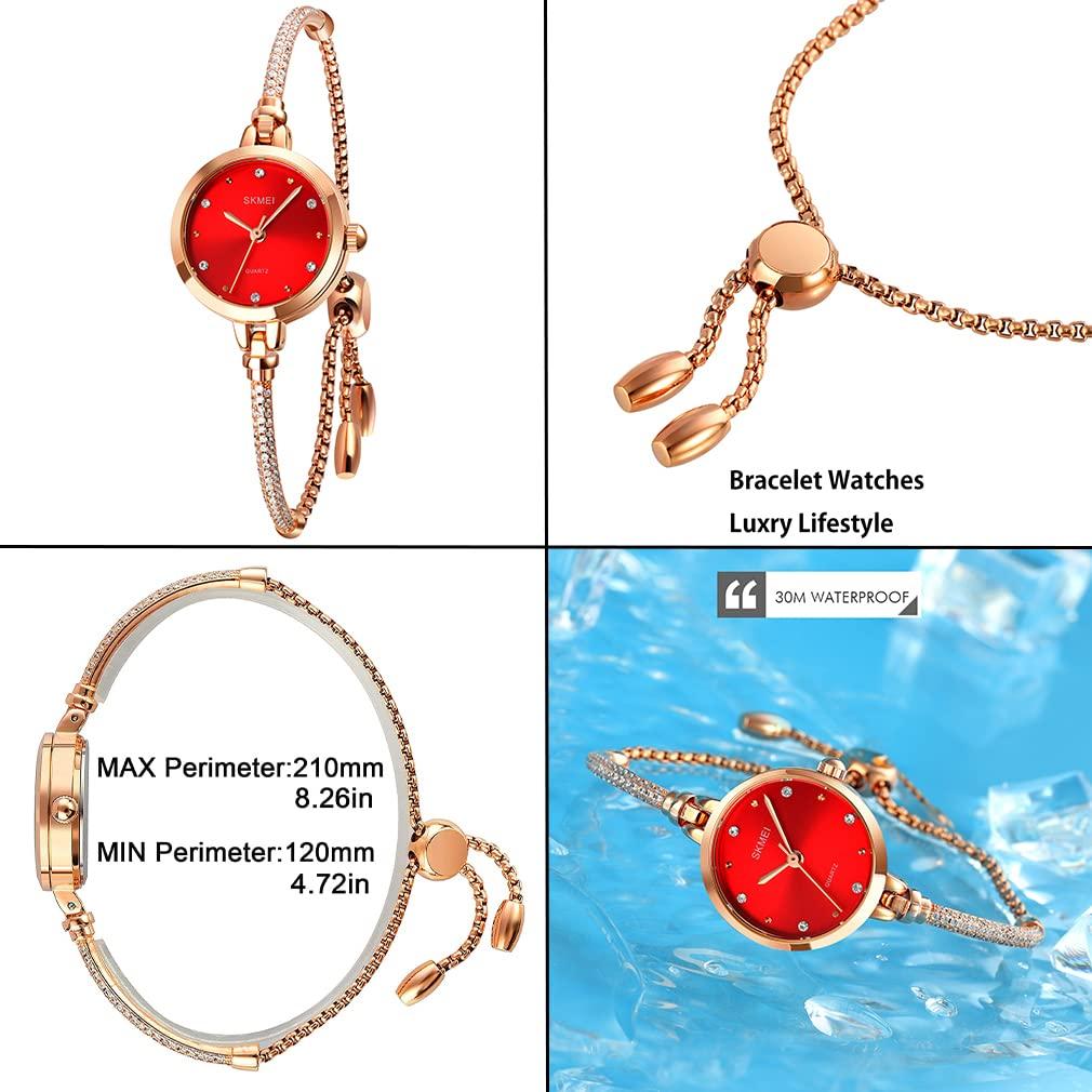 Женские браслетные часы SKMEI: Изысканно спроектированный и надежно установленный. Элегантный дизайн циферблата в сочетании с изысканным часовым мастерством дарит вам самые идеальные ощущения от ношения.. Носите эти часы для бизнеса, отдыха и повседневного использования, в помещении и на открытом воздухе, и они идеально подходят для вас и ваших друзей.. Эти роскошные женские часы быстро доставляются Amazon и идеально доставляются по указанному вами адресу.