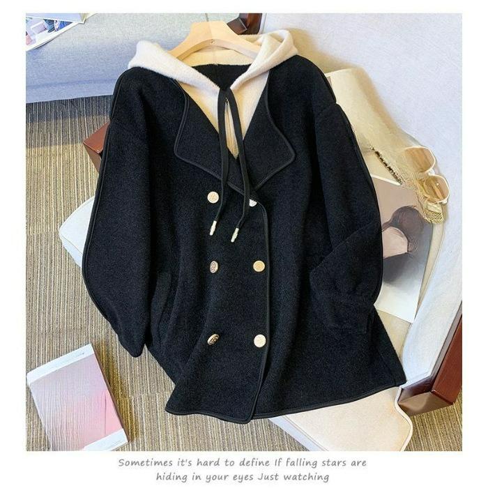 Осенне-зимний двухпредметный шерстяной плащ с капюшоном, Темперамент большого размера, Тонкий кардиган, Шерстяной плащ