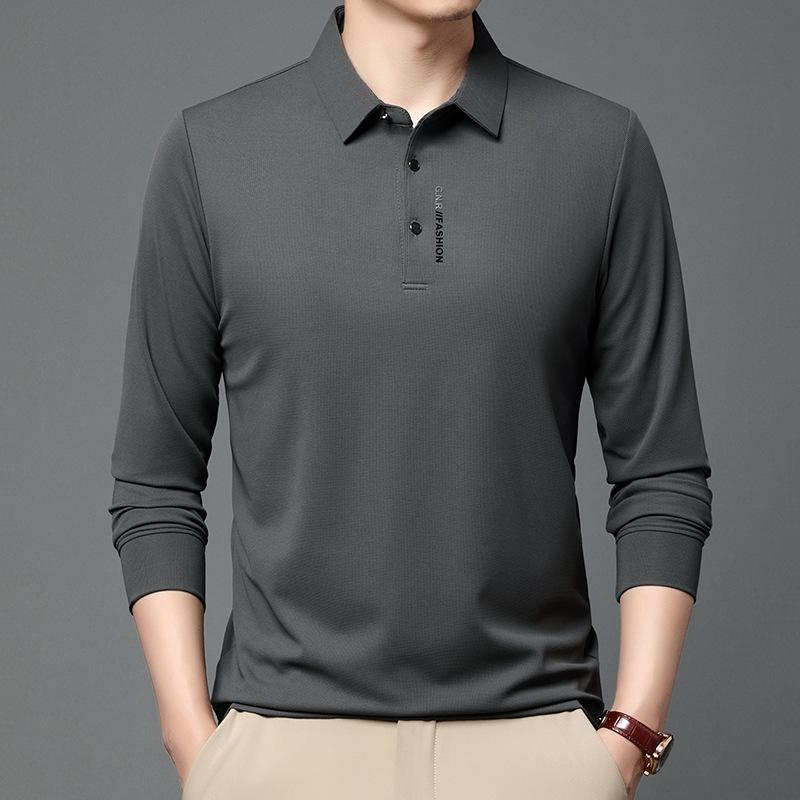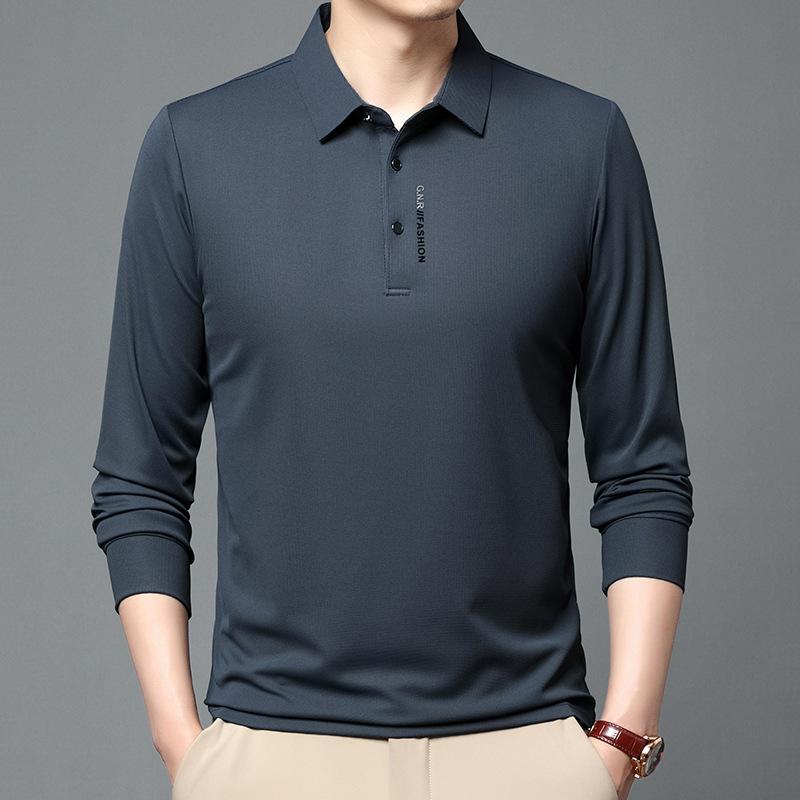 Футболка с длинным рукавом, мужская вафельная однотонная рубашка поло, универсальная футболка с лацканами, топ