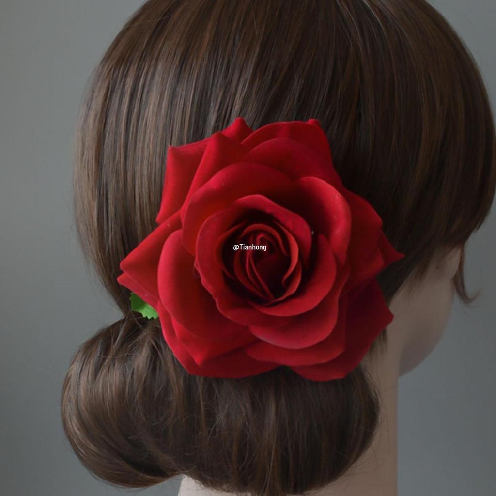 Винтажная красная роза заколка для волос сбоку для танцевальных выступлений