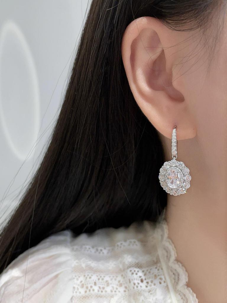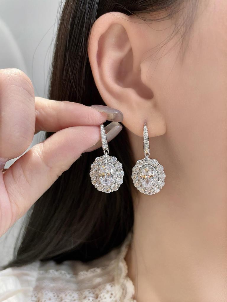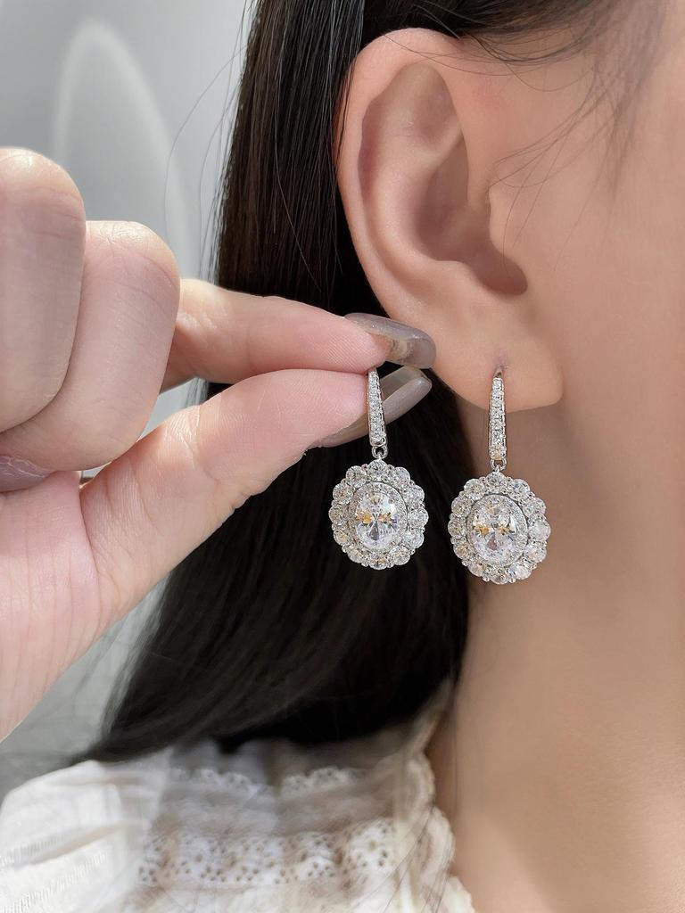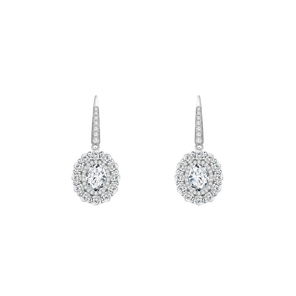 Элегантные серьги-капли с бриллиантовым гало овальной формы - Роскошное серебро 925 пробы