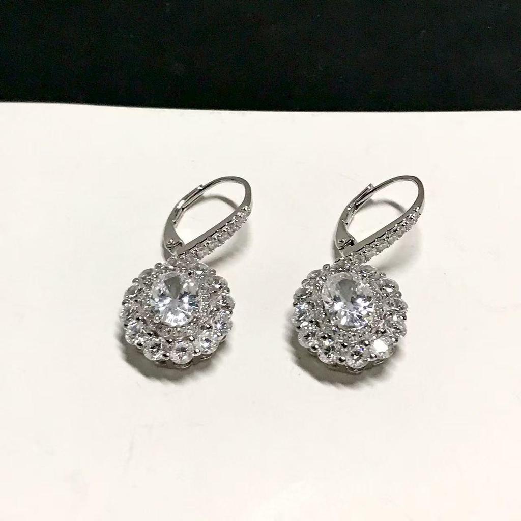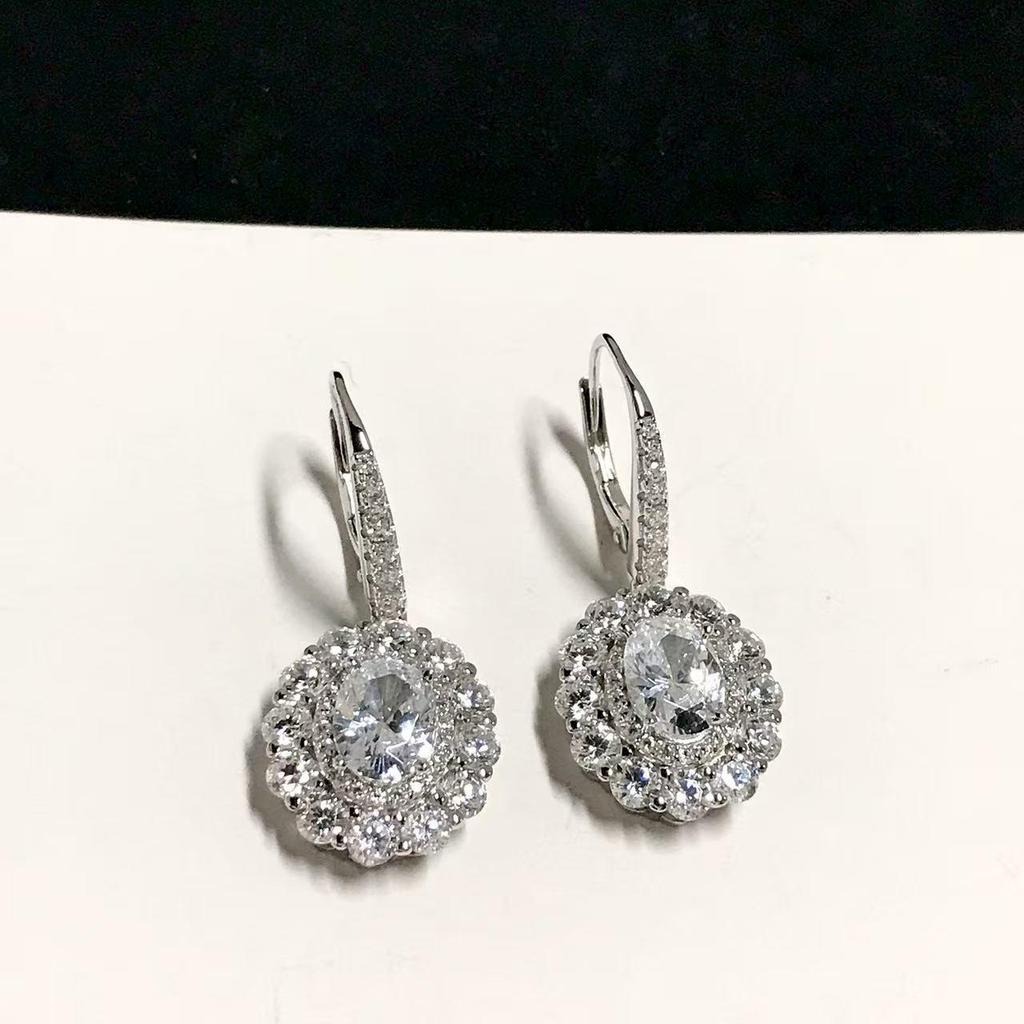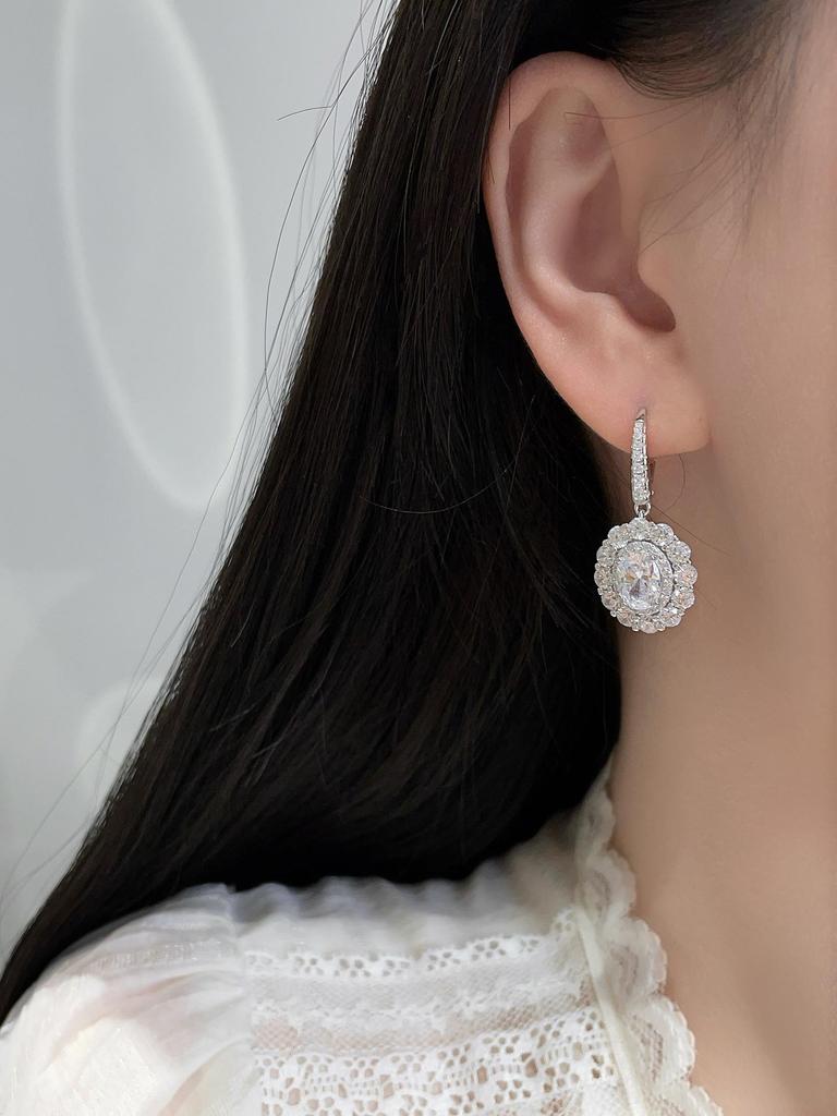 Элегантные серьги-капли с бриллиантовым гало овальной формы - Роскошное серебро 925 пробы