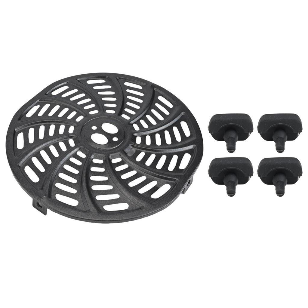 * Изысканный дизайн: Сменная пластина для жарки во фритюрнице обеспечивает вихревой поток воздуха, благодаря чему еда прогревается более равномерно и получается вкусной.. Легко вынимается из корзины для жарки и моется в посудомоечной машине за ручку посередине.. 4 резиновых бампера эффективно защищают внутреннюю стенку фритюрницы от царапин.