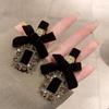 2 шт. Милые заколки для волос с бантиками и стразами для девочек, кавайные, милые головные уборы, бархатные заколки-бантики типа «утиный клюв», детские боковые заколки, заколка для челки