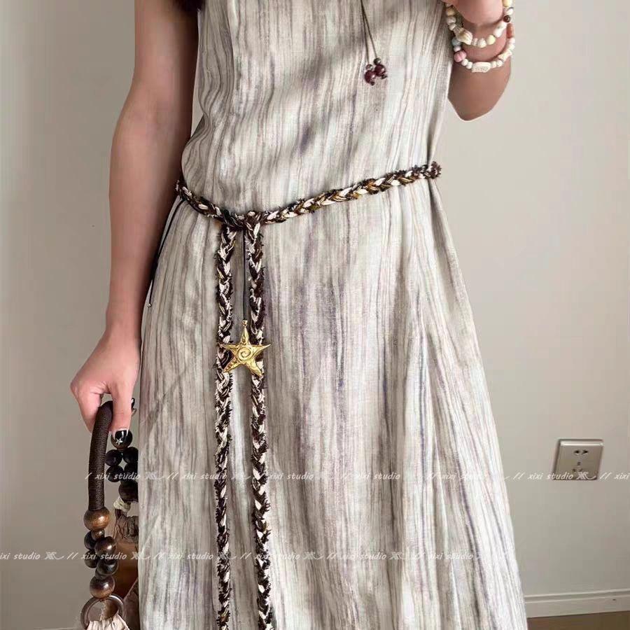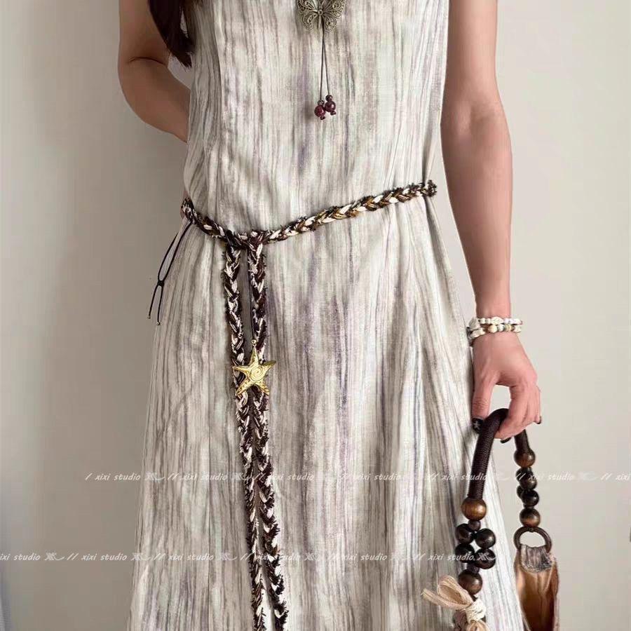 Пояс из плетеной веревки в стиле бохо-шик 2025: Этнический пояс для платьев