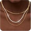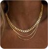 Женский многослойный чокер-ожерелье с золотым покрытием - Набор из 3 минималистичных цепочек кубинского плетения и скрепки